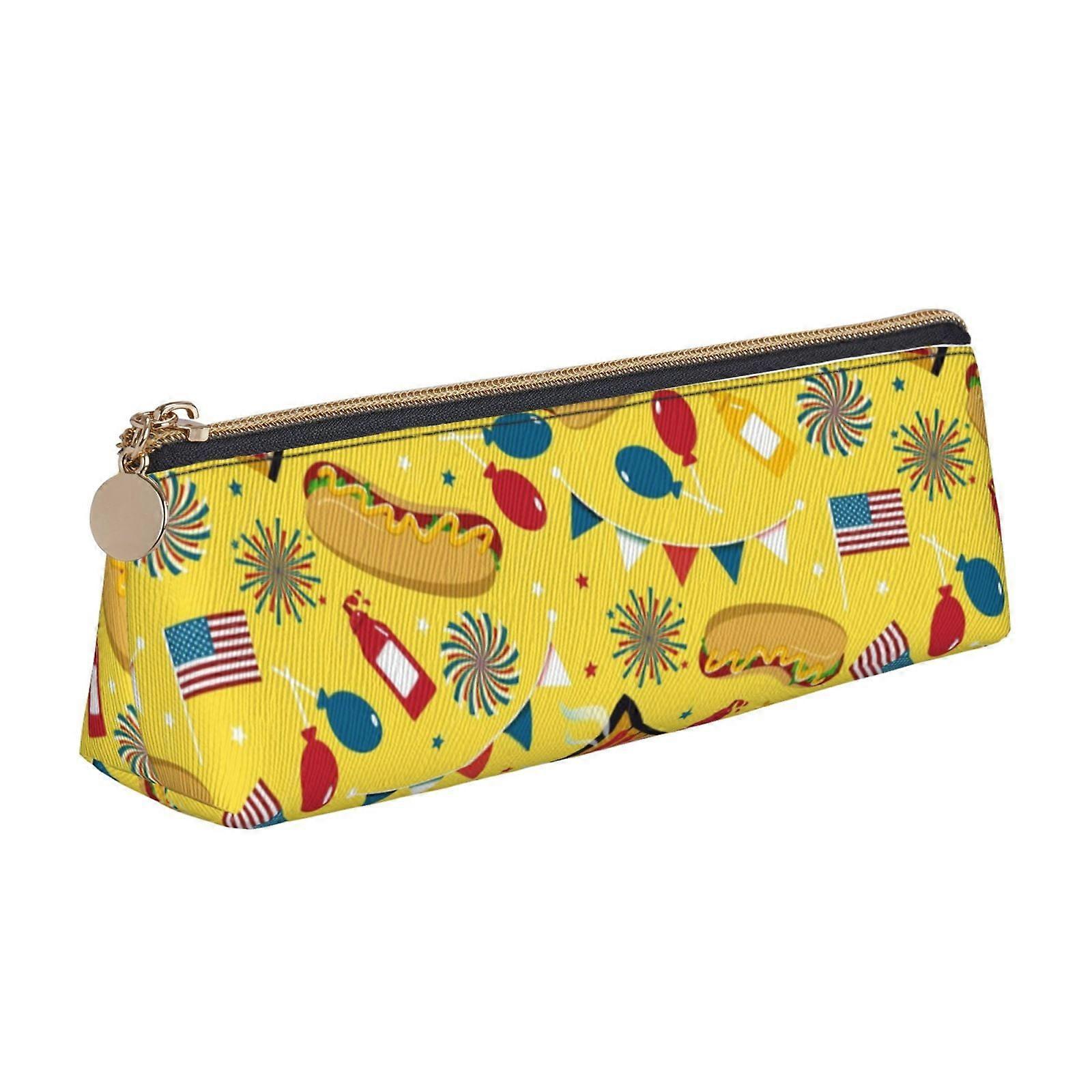 Hot Dog Day Pencil Case with Zipper Leather Pen Pouch Storage Bag Cosmetic Organizer Bag
