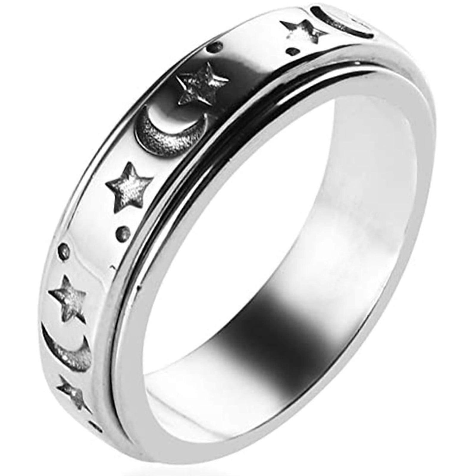 Stainless Steel Moon & Star Ring for Women, Compatible with Anxiety Relief, Engagement, Wedding Band, Size 9, Valentine's Gift