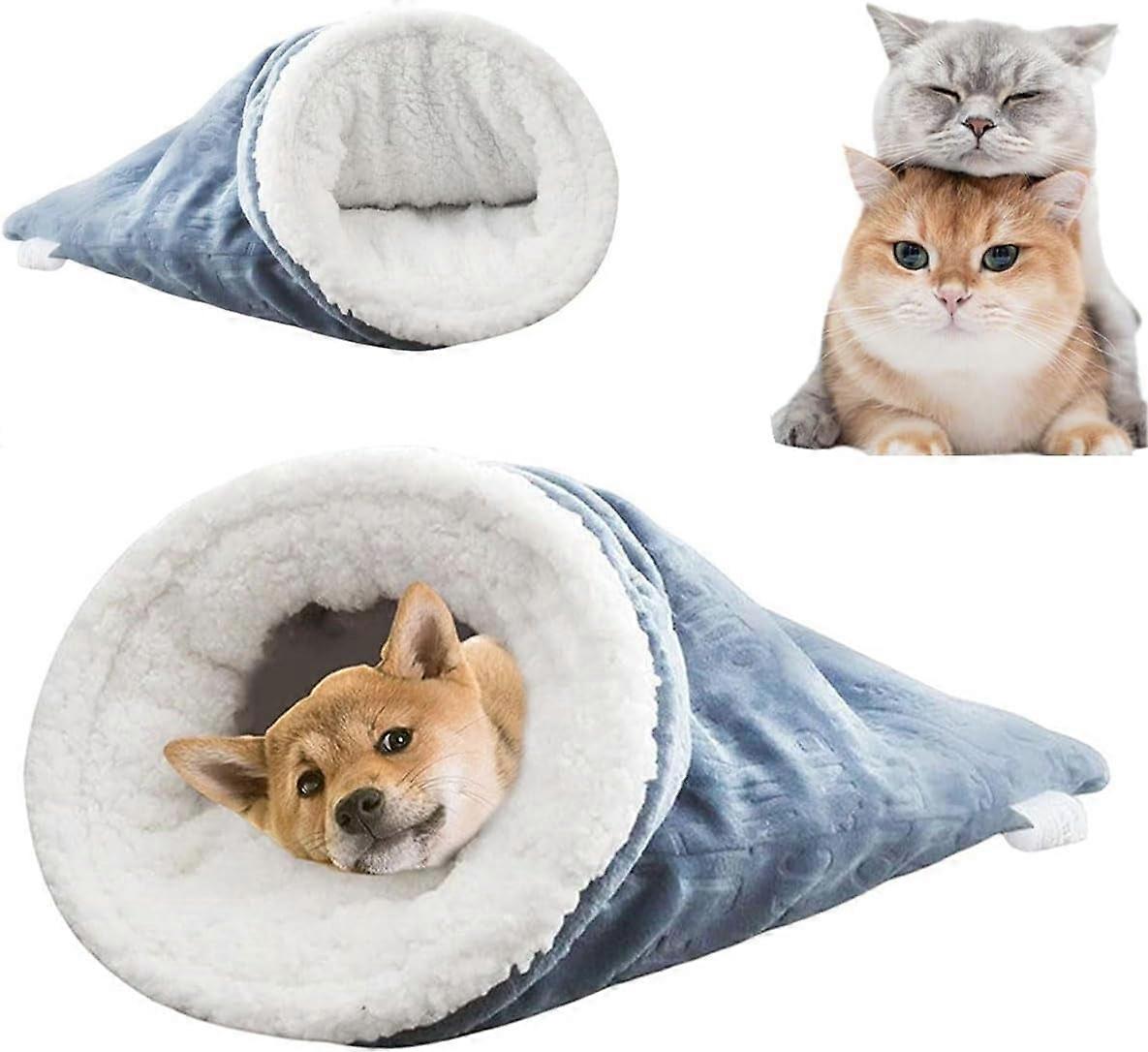 Cat Sleeping Bag, Winter Warm Plush Bed with Removable Cushion, Deep Sleep Cave for Cats & Kittens, Compatible with Small Pets