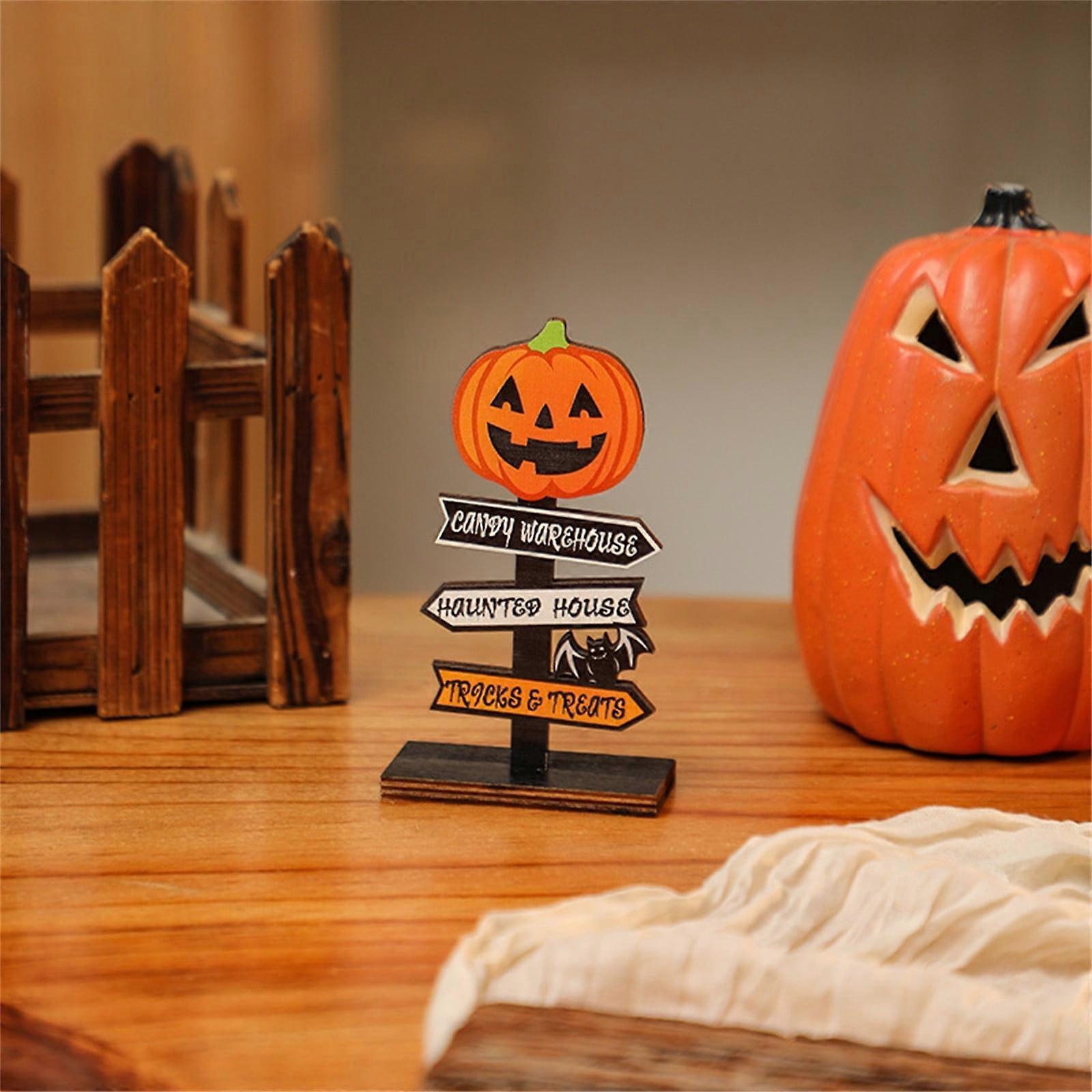 3 PCS Halloween Wooden Ornaments Tree Shaped Pumpkin Letter Halloween Ornaments for Haunted House Festival Party Dining Table Decor Ghost