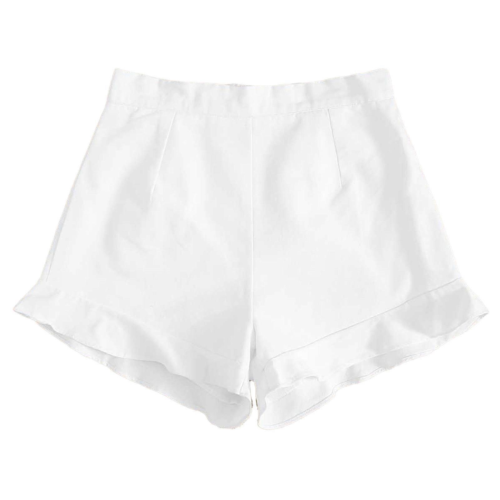 Women Ruffle Hem High Waist Casual Loose Pure Color Wide Legs Fashion Shorts for Summer Home Outdoor Travel