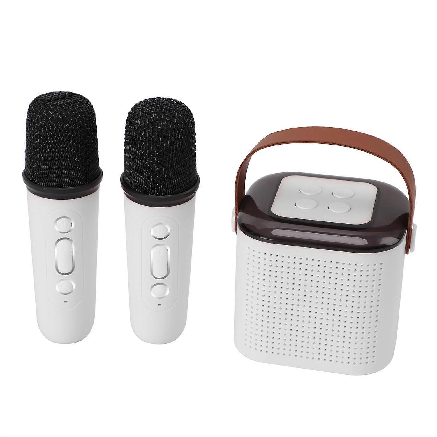 Mini Karaoke Machine, Bluetooth Portable Karaoke With 2 Wireless Microphones, Karaoke Machine For Kids Adults With LED Lights, White