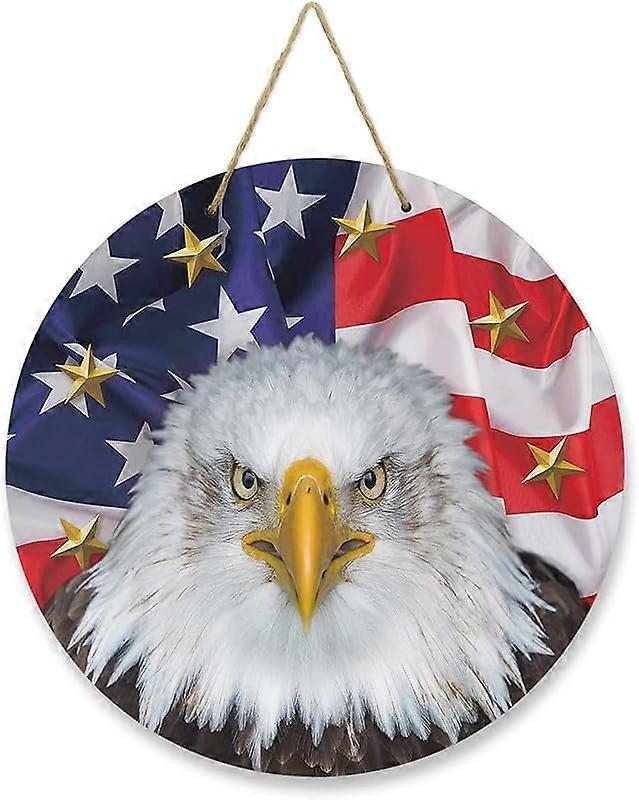 4th of July Welcome Sign, Patriotic Wooden Wreath for Front Door, Wall Decor, Farmhouse Porch Hanging, Independence Day Decoration, 12 Inch
