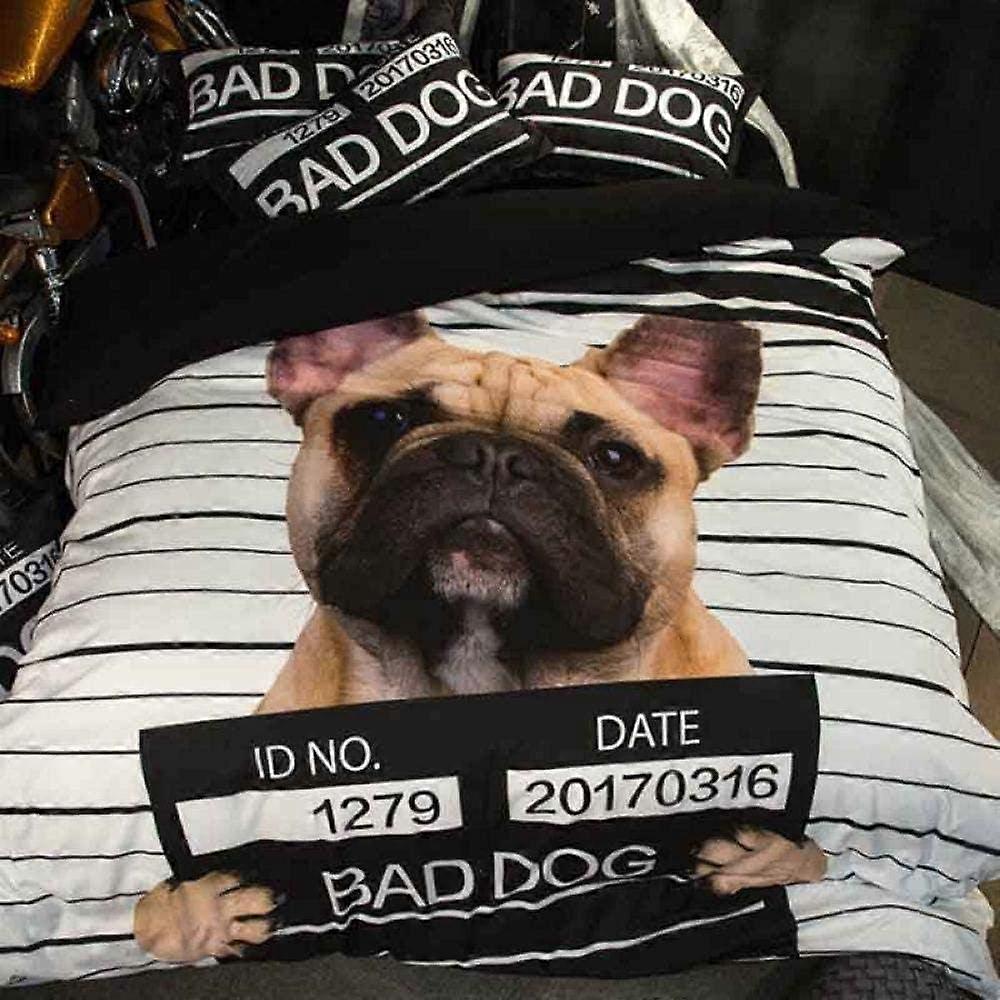 Duvet Covers Animal Dog White Stripes Three Pieces 3D Printed Bedding Set Microfiber Quilt Cover Set with 2 Pillowcases Zipper Closure