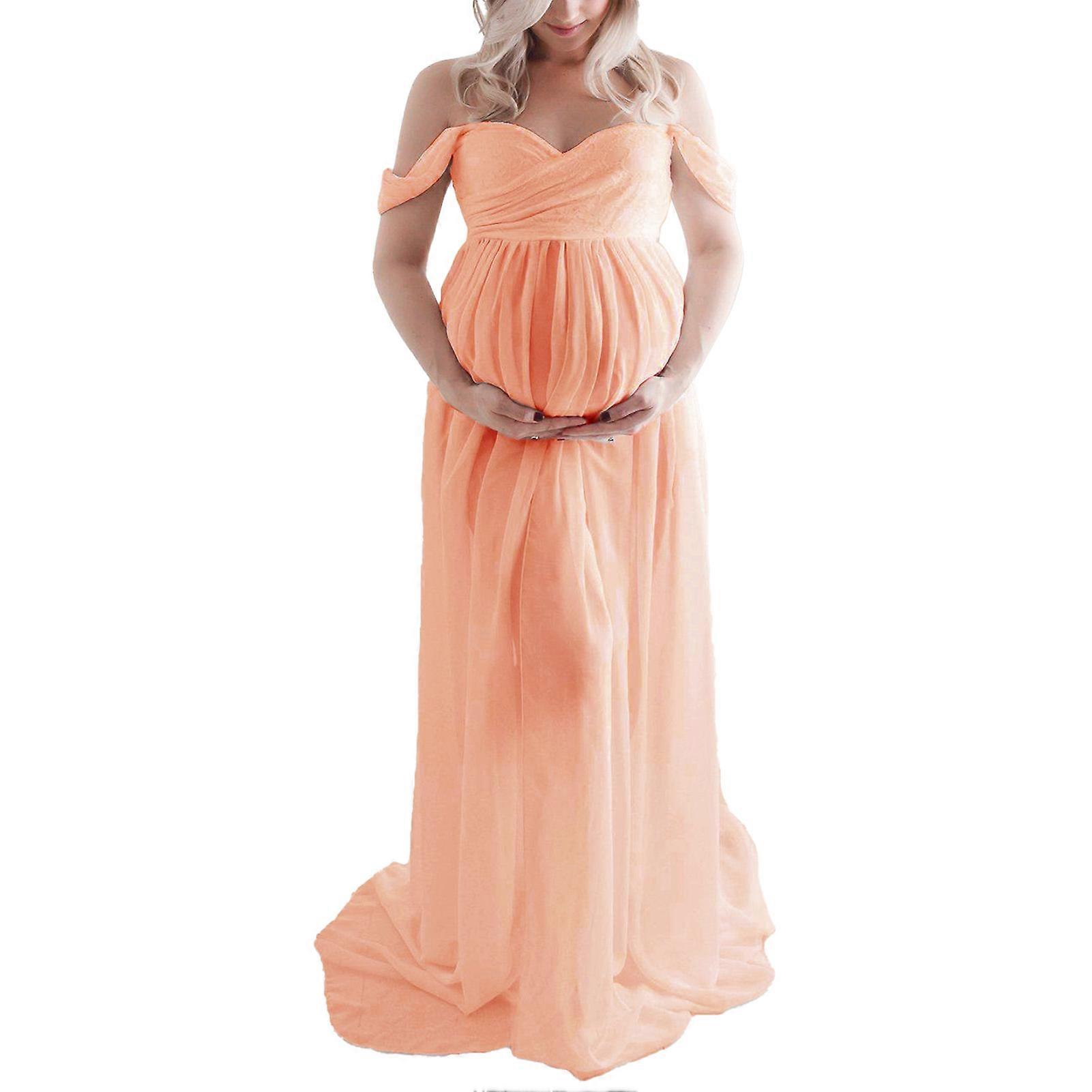 Maternity Long Off Shoulder Elegant Stylish Loose Hem Pregnant Woman Dress for Bridal Shop Shooting