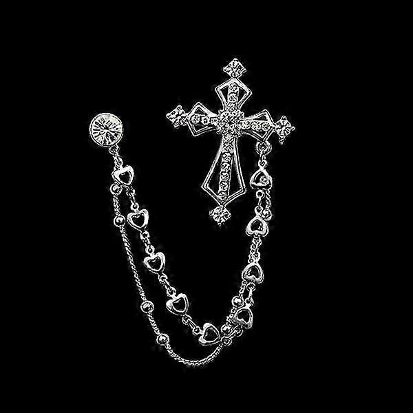 Stunning Silver Cross Lapel Chain Collar Neck Tips Brooch Pin Mens Accessory!zz42