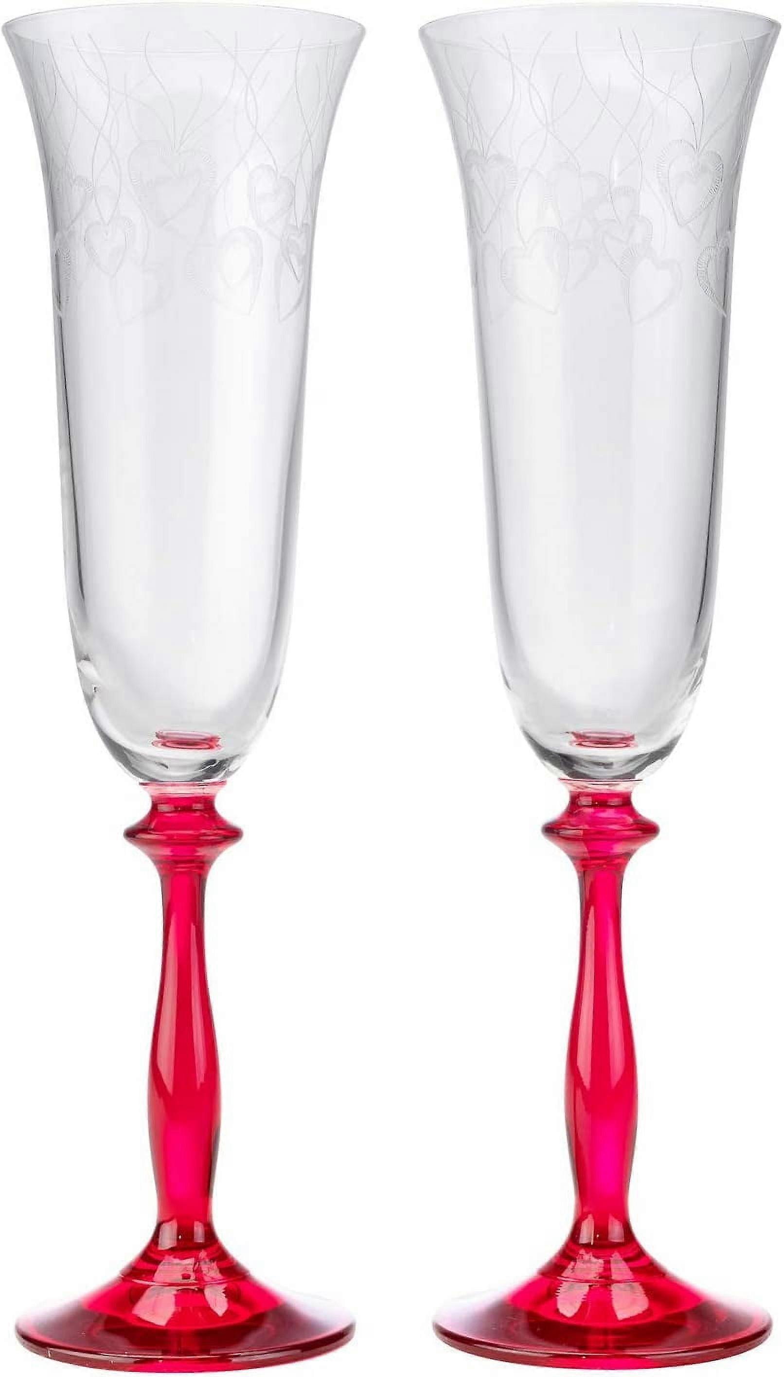 LOVE 6-Ounces Crystal Champagne Glass Set with a Red Stem, Footed Sparkling Wine Glass Set, Romantic Crystalware Gift, Stemmed Flutes Set, 2 Piece Set