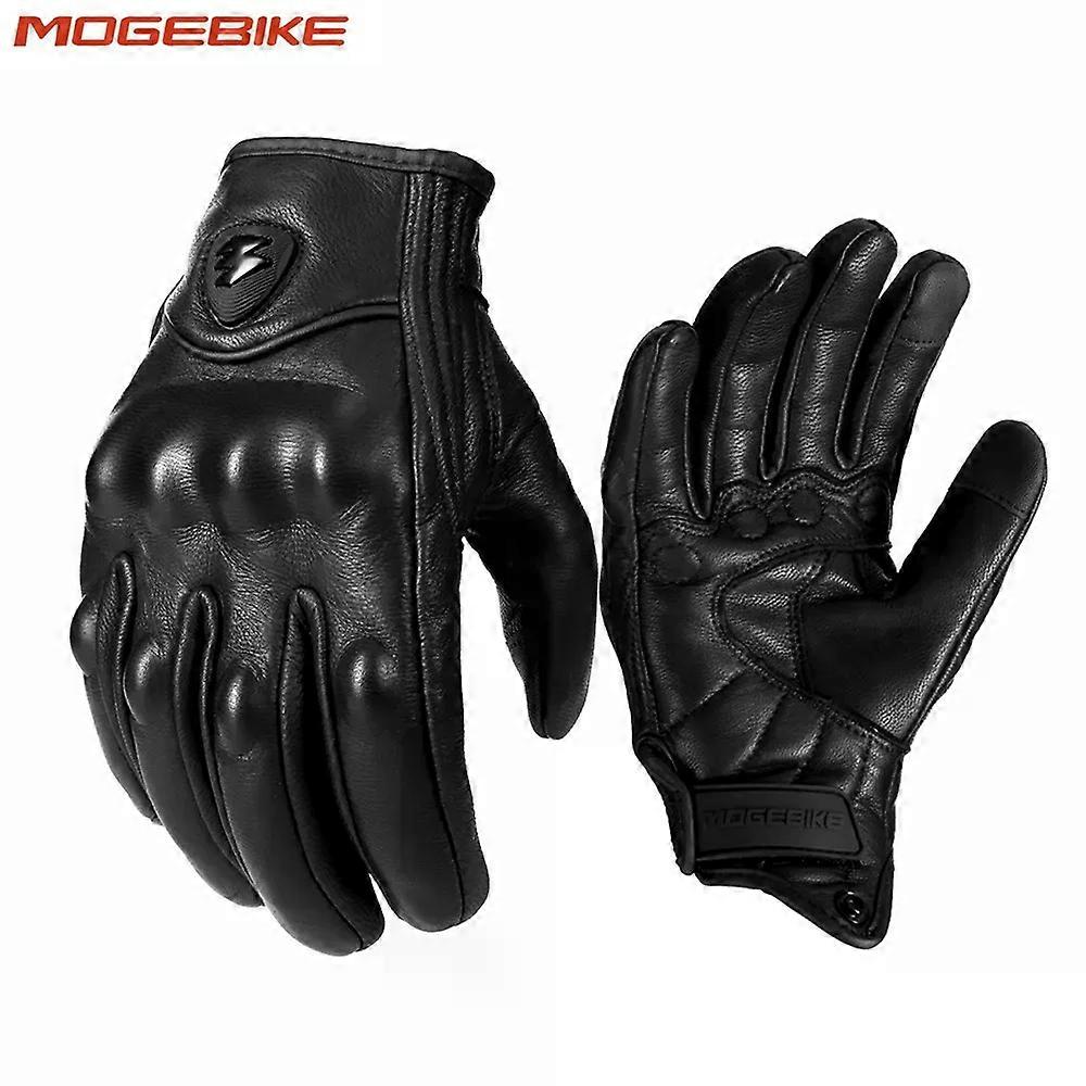 unique MOGEBIKE New Vintage Leather Motorcycle Gloves Men Black Wear-resistant Guantes Touchscreen Anti-slip Retro Motobiker Luvas