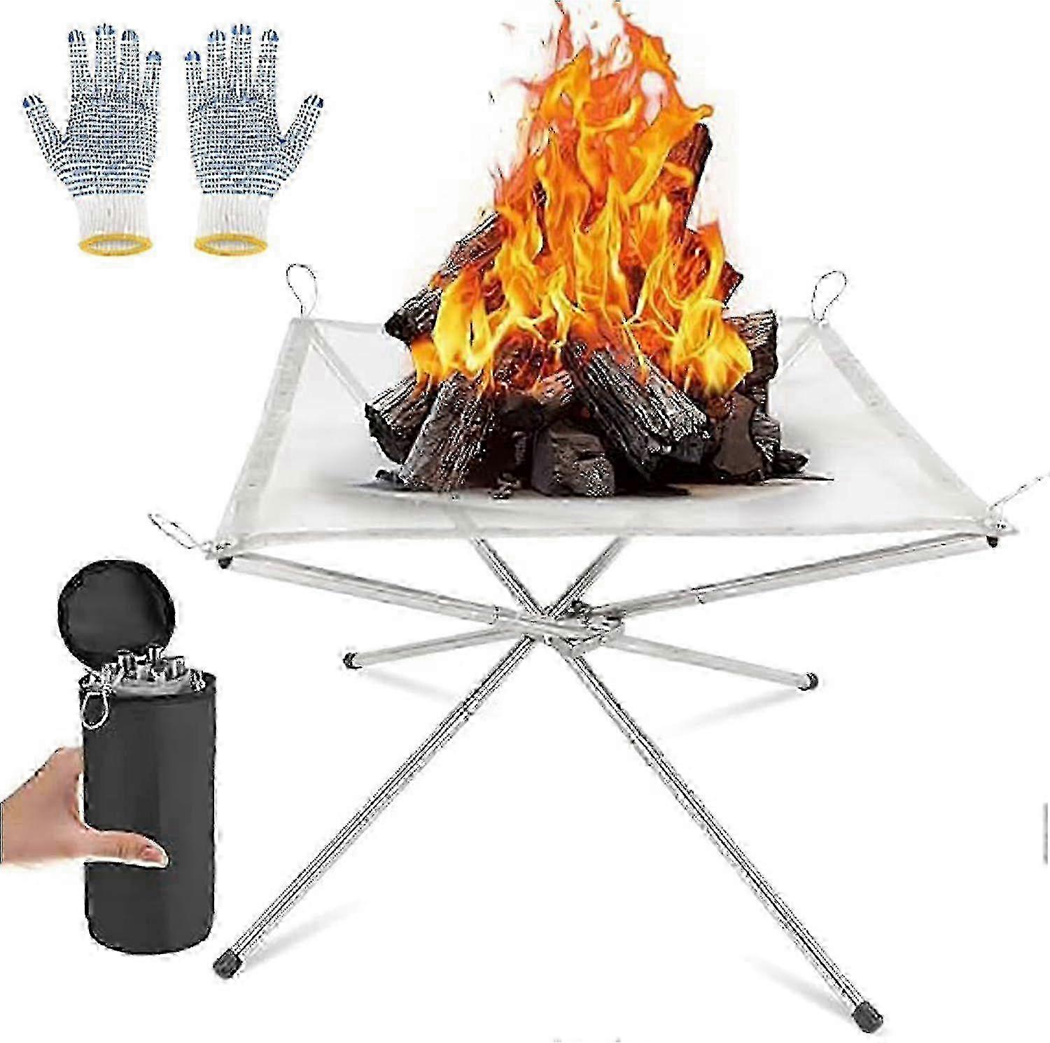 Portable Fire Pit for Camping, Outdoor Foldable Firepit Fireplace with Heat Resistant Gloves & Carrying Bag, Stainless Steel Mesh BBQ
