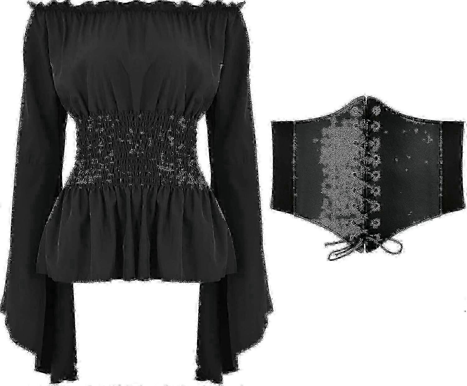 2023 Womens Renaissance Blouse Tops Corset Waist Belt Medieval Victorian Off Shoulder Long Sleeve Shirt Pirate Cosplay Costumes Fast-z