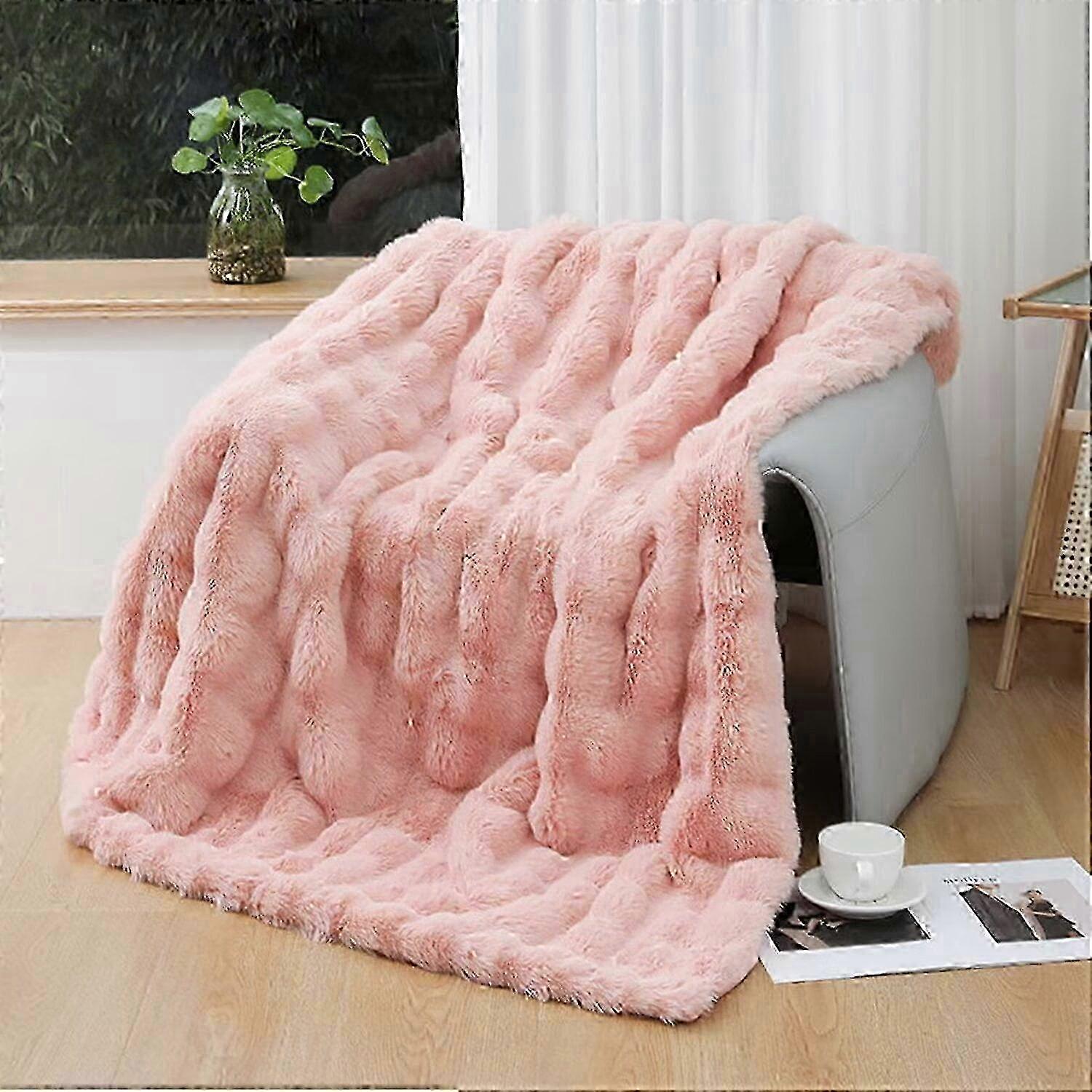 Oversized Throw Blanket 60'' x 80'', Luxurious Plush Faux Fur, Warm Thick Bubble, compatible with Couch, Chair, Bed, Sofa, Living Room