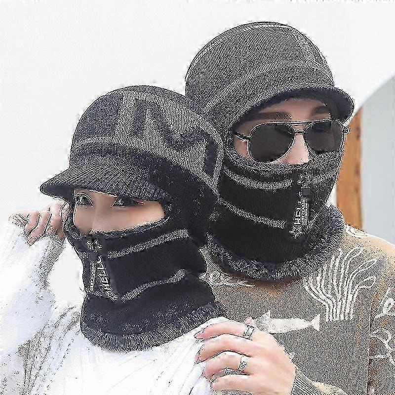 Couple Fleece Knitted Hat Ski Hat Sets Windproof Winter Outdoor Knit Thick Siamese Scarf Collar Women Warm Keep Face Warmer Beanies Co