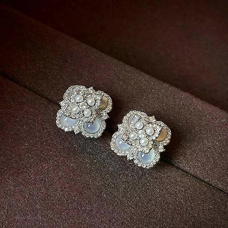 2025 Korean new design fashion jewelry silver plated zircon leaves cat eye earrings elegant women s daily work accessories