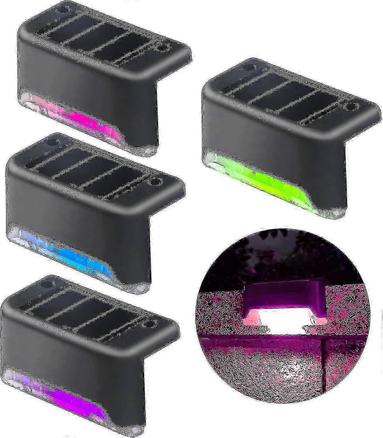 4 Pack Solar Stair Lamp, Waterproof Led Solar Fence Lights Outdoor, Rgb Variable Color For Pathway, Yard, Patio, Stairs, Steps And Gar