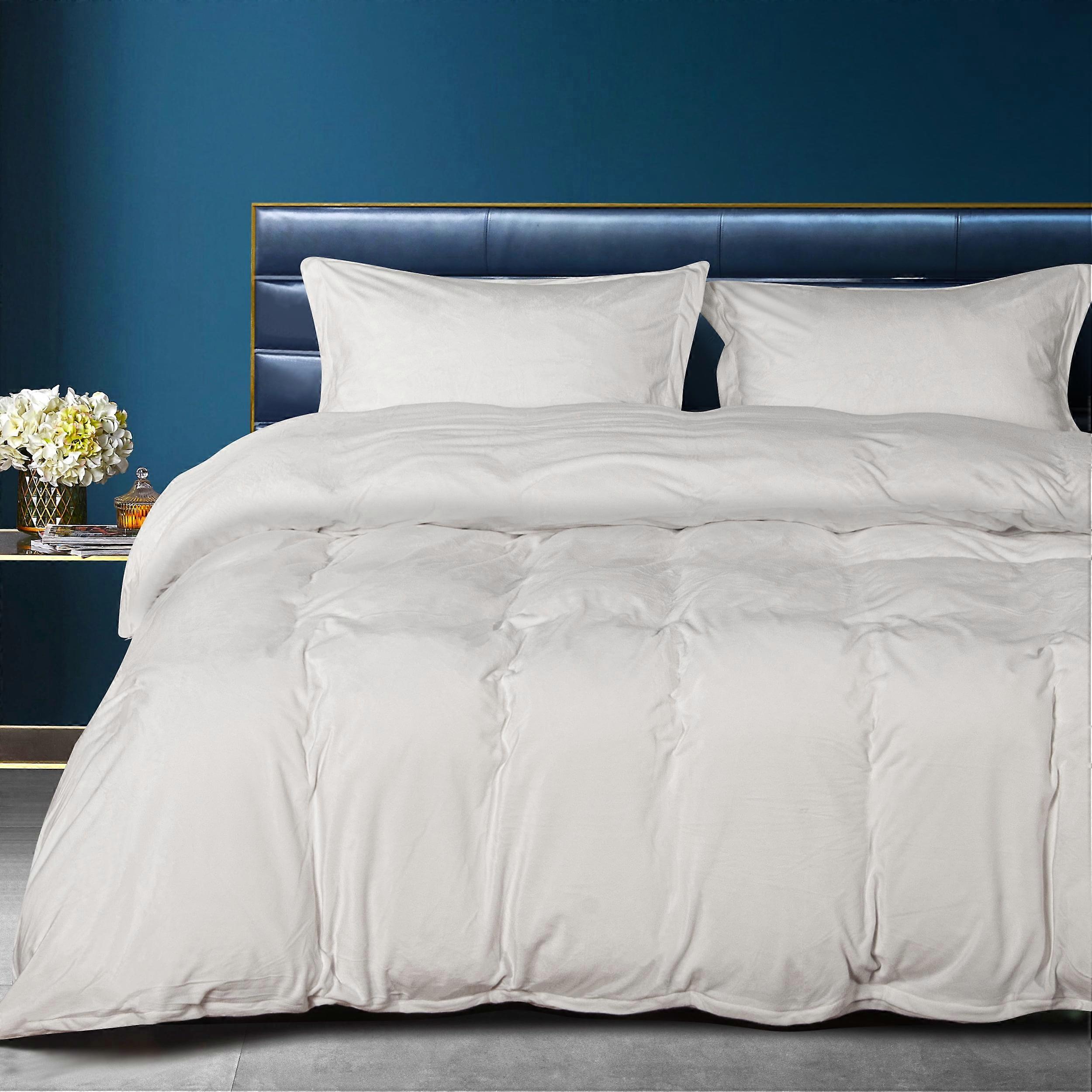 We adopt exquisite velvet fabric which feels soft and smooth to create a super warm, comfortable duvet cover set. The durable velvet fabric is not easy to pilling after frequent wash. With a hidden zipper closure on velvet duvet cover, greatly speed up your bed making process. Delicately crafted with four ribbons in 4 corners of exquisite duvet cover, can holds the duvet. The duvet cover set will remain velvety soft and offer cozy warmth all year round. Snuggle down in toasty full duvet cover like a big giant hug from your bed while you sleep in frozen night feeling like a furnace. Featuring a solid simple hue, give your bedroom a simple and luxurious allure for an impressive coordinating foundation. Material: Velvet Color:White Size: Queen(1 Duvet cover: 90"x90"; 2 pillow sham: 20"x26"+2", comforter and pillow are not included.) Package Include: 1 Duvet Cover; 2 Pillow Sham (comforter and pillow are not included.) Feature: Fluffy; Machine Washable; Ultra Soft; Warm; Fade, Shrink and Stain resistant