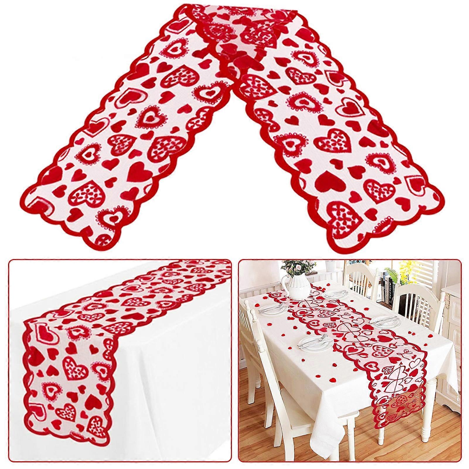 Heart Pattern Table Runner Placemat Wedding Party Valentine Gift Home Desk Cloth-2