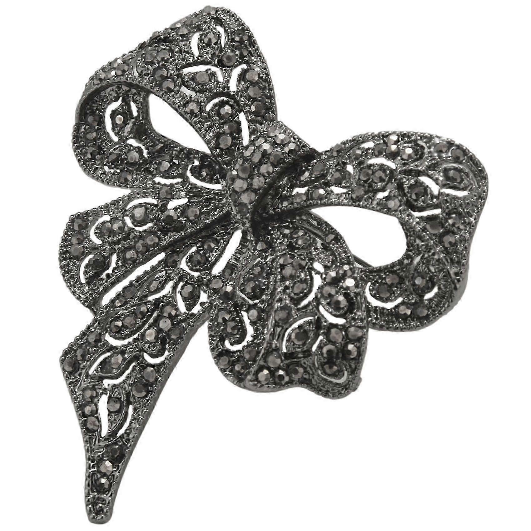 Vintage Rhinestone Bow Brooches for Women Black Bowknot Brooch Pin Fashion Jewelry Coat Accessories