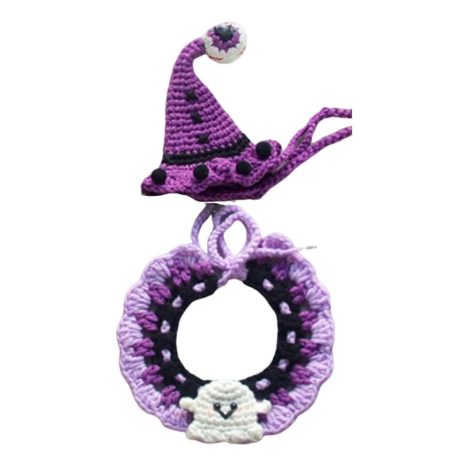 Halloween Pet Pumpkin Hat Ghost Collar Set Adjustable Gothic Themed Outfit for Cats Small Dogs Knitted Costume Accessories