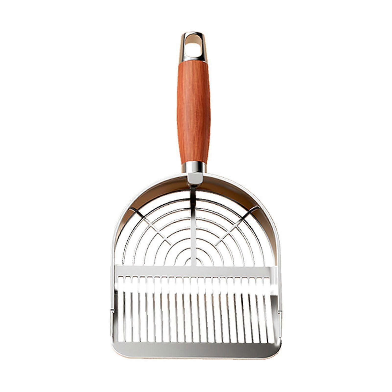 Efficient Space-Saving Design: Equipped with a hook and hidden storage stand, this cat litter scoop set ensures your cleaning tools are organized and easily accessible. Hang it on the wall or the litter box to save space, keeping your cleaning areas tidy and efficient. Premium Durability and Anti-Rust Properties: Crafted from 304 stainless steel, this heavy-duty shovel is resistant to rust and breakage. The smooth surface is easy to clean, while the hardwood handle is securely attached with durable screws for long-lasting reliability. Say goodbye to bending or breaking with this sturdy scoop that effortlessly handles heavy clumps. Tailored for Clay Sand Litter: Specifically designed for Clay Sand litter, this metal cat litter scoop features two screening sizes for efficient particle separation. The fine 4mm pores sift small particles, while the wider pores handle larger debris. Its innovative design effectively removes crushed litter from the front and tackles heavy clumps at the back, preventing spills and maintaining cleanliness. Easy Cleaning with Precision: The scoop's smooth edges effortlessly scrape off sticky debris from the litter box bottom. Its fine sieve design accommodates various litter types, including pine pellets and clumping options. From large clumps to feces, this versatile spoon ensures thorough cleaning every time without hassle. Pet Cleaning Supplies: Suitable for various litter types, including pine pellets, it ensures thorough cleaning every time. Say goodbye to bending or breaking with this sturdy and reliable cat litter shovel. Ideal for cat supplies and pet cleaning, this cat litter scoop is a must-have for every cat owner looking for a convenient and effective cleaning tool. Item Name: Cat Litter Scoop Material: Metal Features: Efficient, Fast Sifting, Easy Cleaning, Portable Size Details: Scoop: 13cm x 15cm/5.12" x 5.91" (Approx.) Handle: 12.5cm/4.92" (Approx.) Notes: Due to the light and screen setting difference, the item's color may be slightly different from the pictures. Please allow slight dimension difference due to different manual measurement. Package Includes: 1 x Cat Litter Scoop