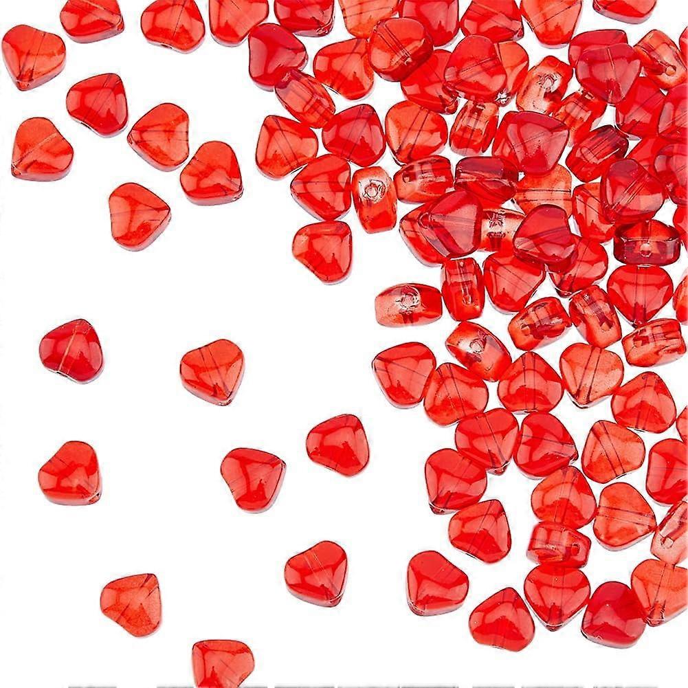 100Pcs Imitation Jade Heart Glass Beads, Red Love Crystal Spacer Beads, 0.7mm Hole for DIY Jewelry Making, Compatible with Charms