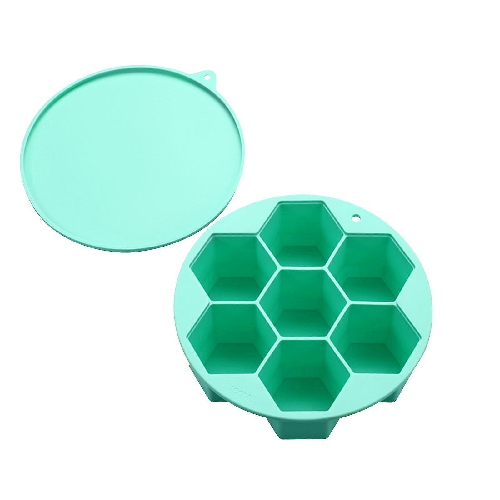 Poaug Ice Cube Mold 7 Cell Honeycomb, Large Capacity, Food Grade Silicone with Lid, Green - Compatible with Standard Freezers