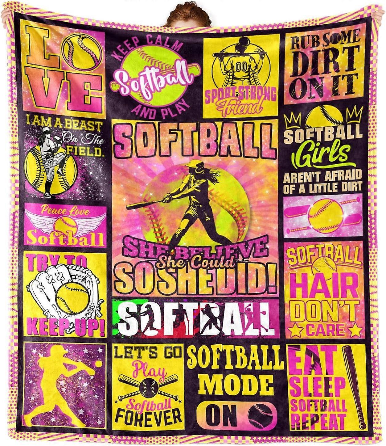 Softball Gifts for Girls Women, Softball Blankets 60"x50", Softball Lover Gifts, compatible with Softball Team, Accessories for Kids Teens Adults