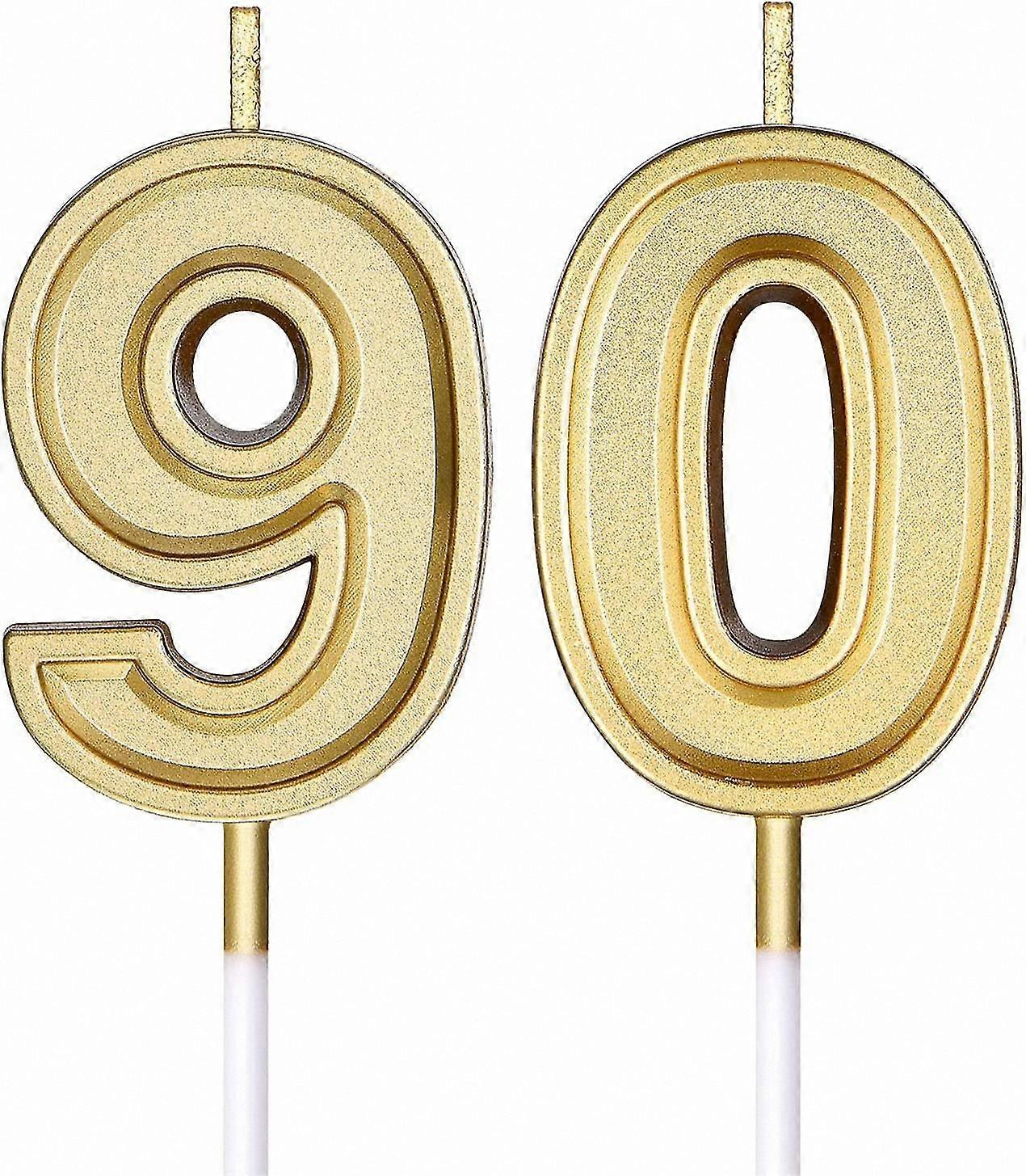 Gold Number 90 Birthday Candle Toppers for Cake Decoration, Ideal for Wedding, Anniversary, and Party Celebration Supplies