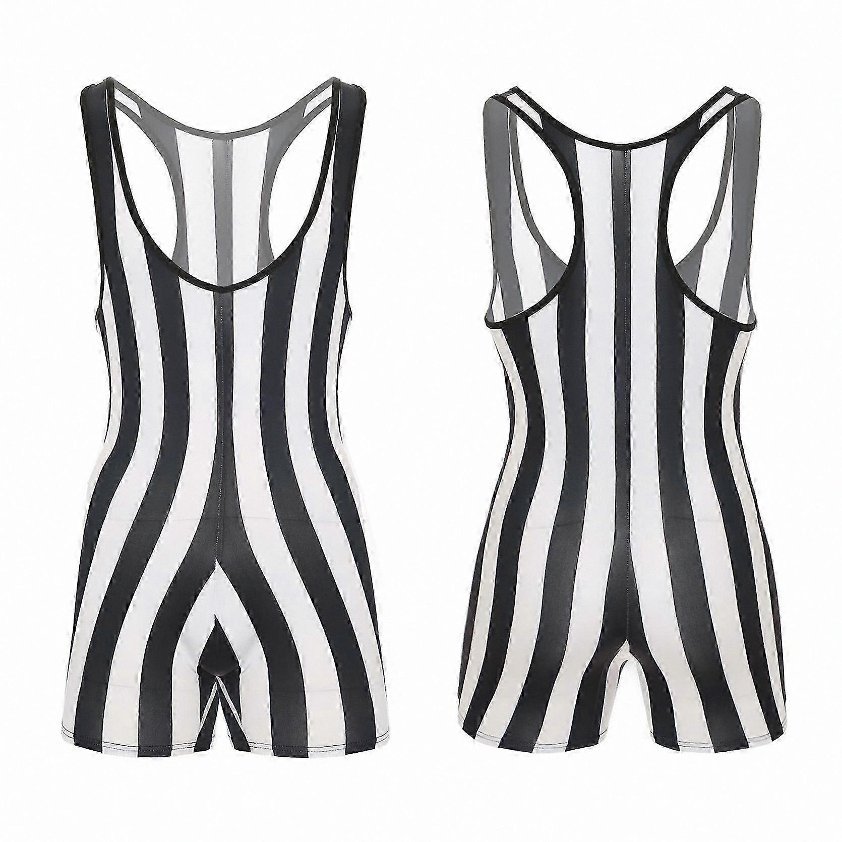 Size Bust Waist Length Hips S 80cm 70cm 78cm 85cm M 82cm 72cm 80cm 87cm L 85cm 78cm 82cm 90cm XL 90cm 84cm 86cm 94cm XXL 92cm 86cm 87cm 97cm 3XL 98cm 90cm 89cm 103cm Set Include: 1Pc Bodysuit Condition: New Material: 90% Polyester, 10% Spandex Features: Made of skin-friendly polyester with good elasticity. The soft fabric is breathable, moisture-wicking, and quick-drying. Mens bodysuit features a sleeveless design, striped pattern, boxer shorts cut, and slim fit for a supportive shapewear effect. Provides moderate compression to help tighten the waist, abdomen, and thighs, enhancing body shape. Can be worn alone or as a base layer under shirts, hoodies, or suits. Helps accentuate a muscular appearance and boost confidence. Suitable for workout, fitness, gymnastics, exercise, jogging, cycling, yoga, bodybuilding, gym activities, swimwear, and surfing. Washing Care: Hand wash Label: Yes