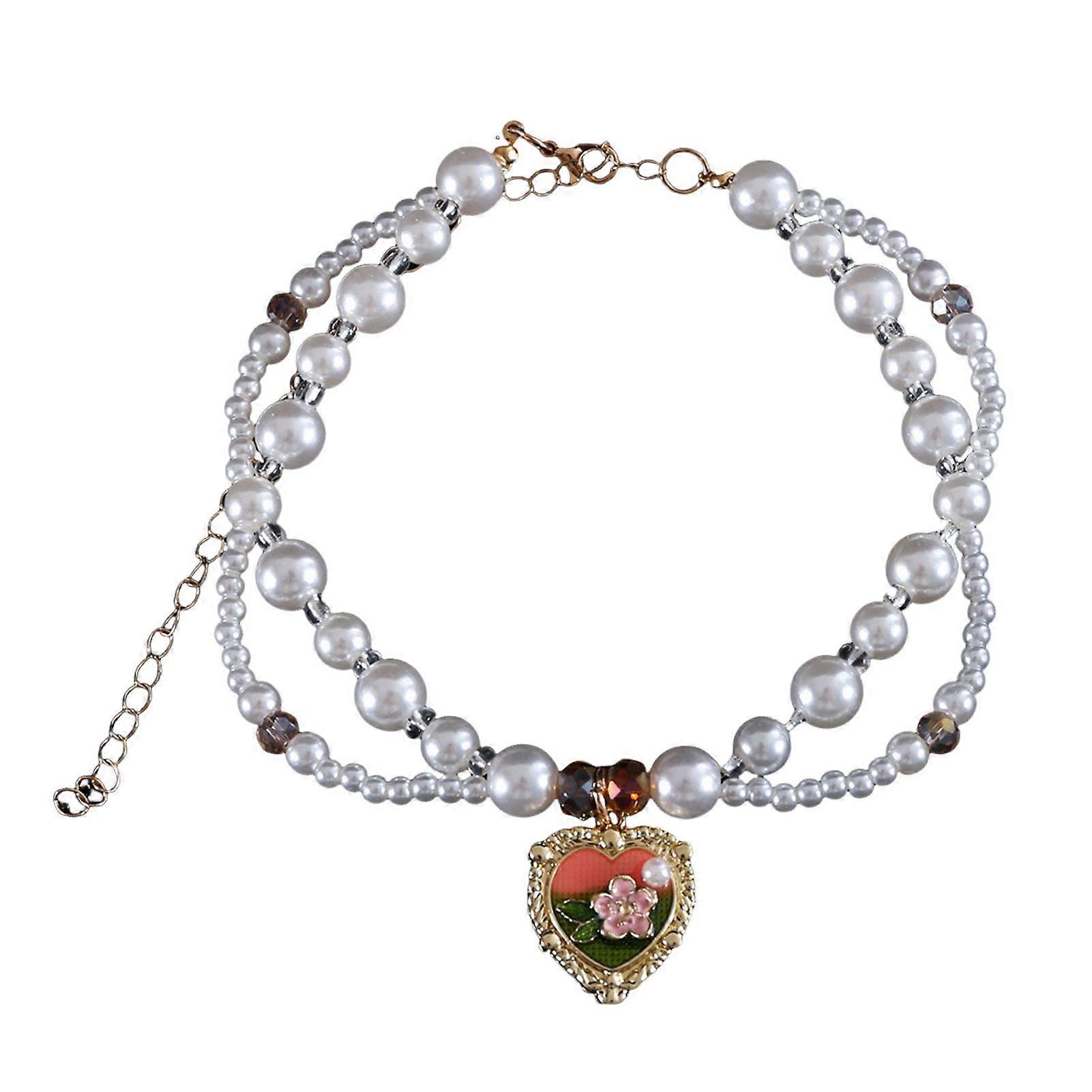 Faux Pearl Pet Collar for Dogs Cats Double-layer Beaded Necklace with Enamel Pendant for Pet Dress-up Jewelry Accessories