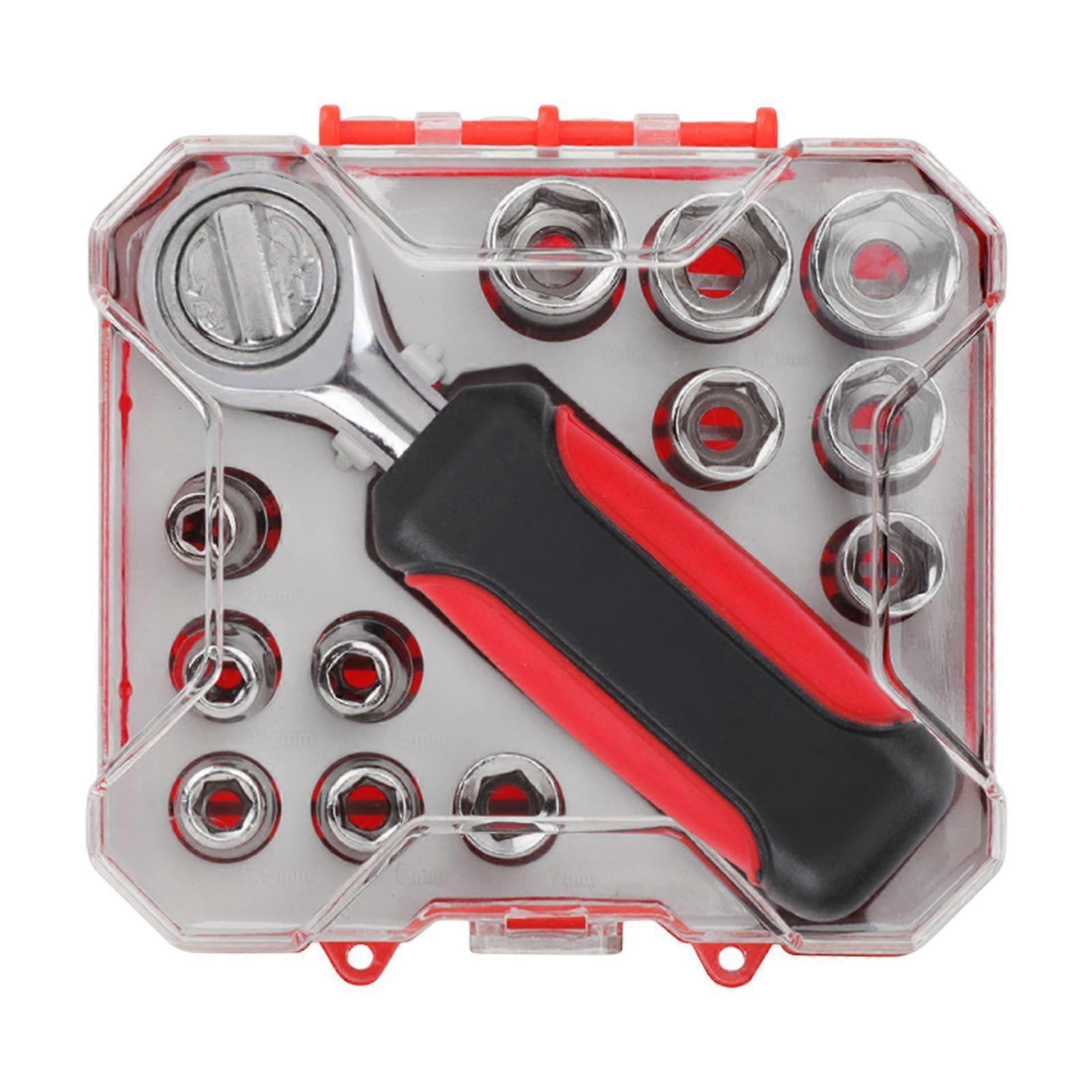 Interchangeable Ratchet Wrench with Non Slip Handle Universal 1/4 Inch Drive Impact Sockets 4-13mm Metric Socket Wrench Set