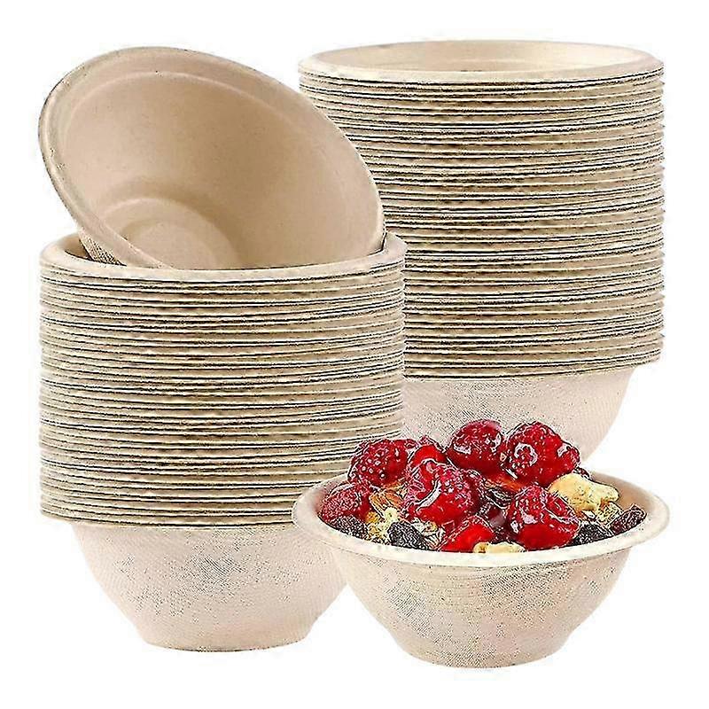 100Pcs Strong Disposable Paper Bowls,350Ml Disposable Sugarcane Paper Bowls Brown Super Rigid Biodegradable Edition 1031