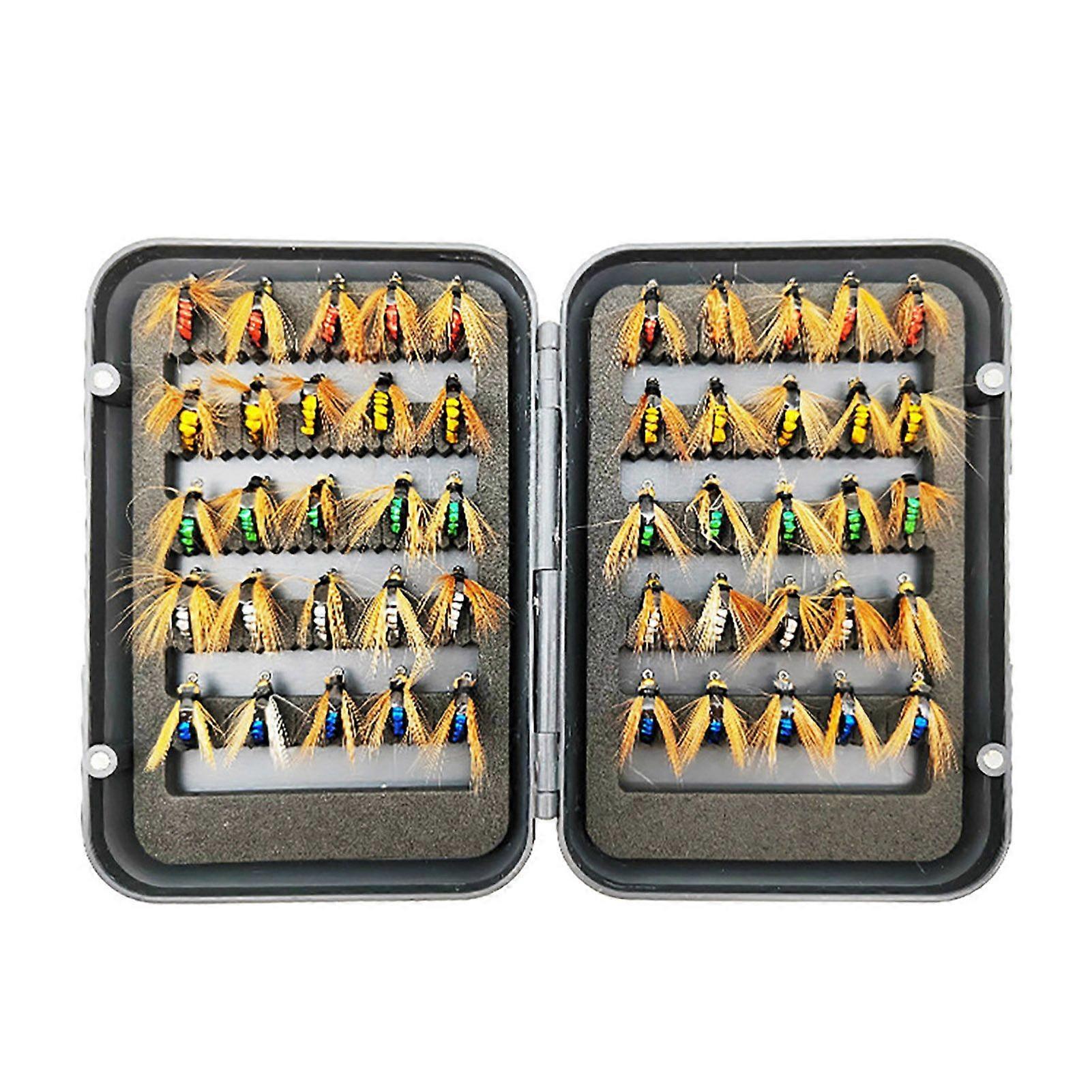 50Pcs/Box Fly Fishing Lure with Sharp Hook Realistic Bionic Floating Feather Fly Fishing Bait Freshwater Saltwater Bass Trout Fishing Accessories