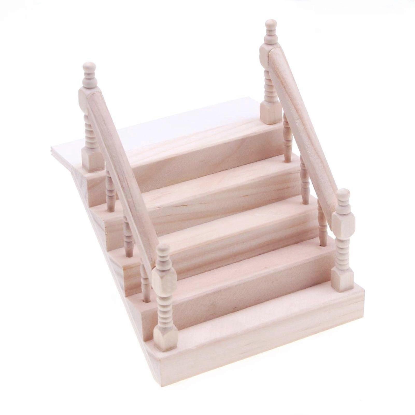Doll House Staircase Mini Wooden Furniture Handrail Staircase 1:12 Scale Miniature Stairs for Doll House DIY Micro-landscape Accessories