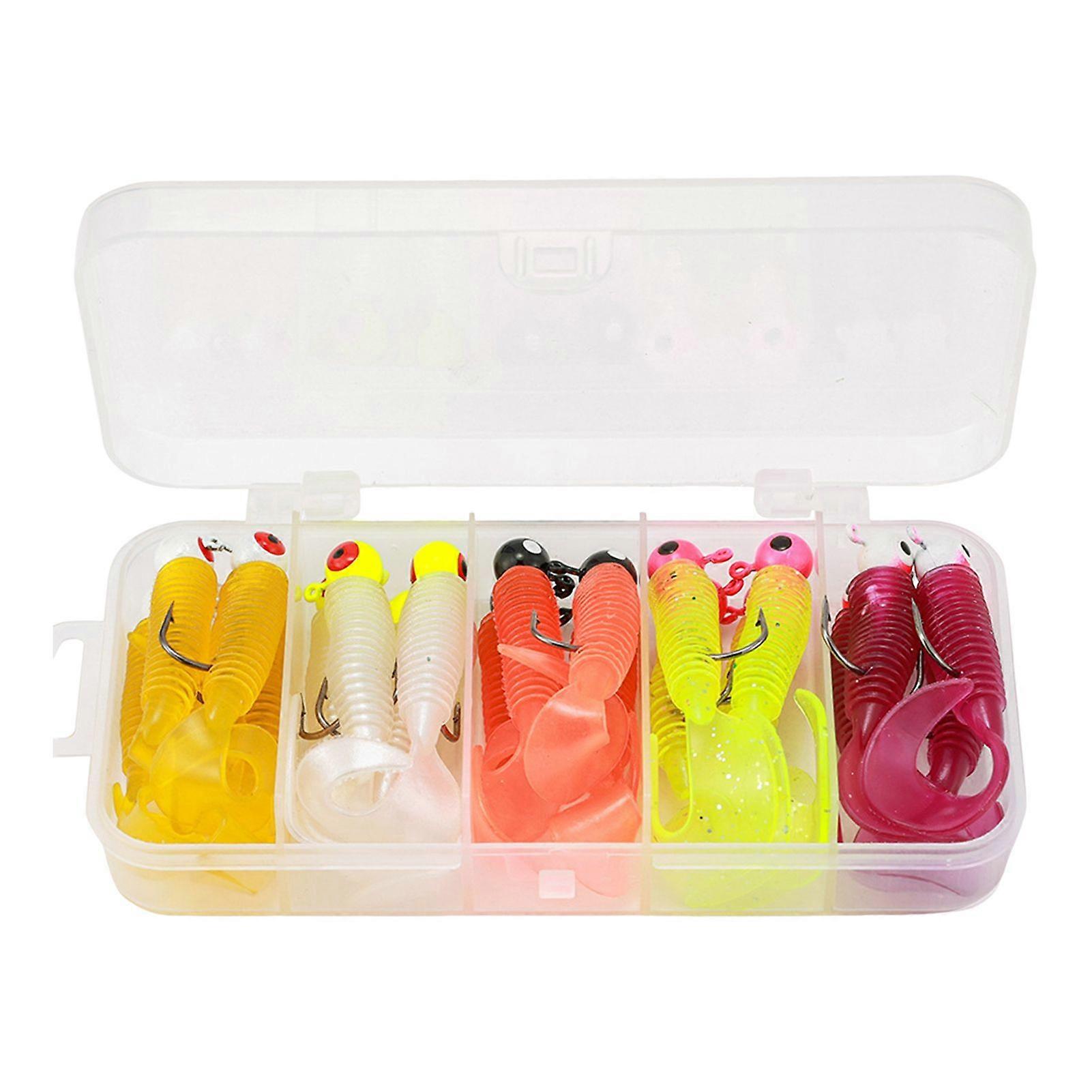 20Pcs Soft Fishing Lure Metal Jig Head Fishing Hooks Realistic Design Bright Color Artificial Bait Worm Lure Fishing Accessories