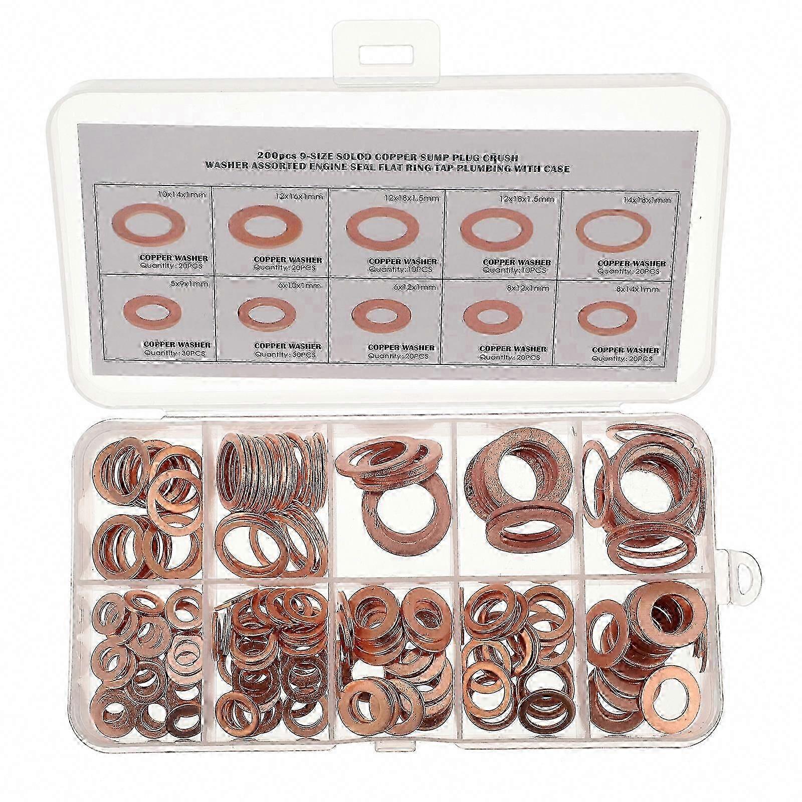 200pcs Copper Washer Flat Ring Sealing Gasket for Plumbing Automotive Repair1.8X1.8cmGolden SZRH