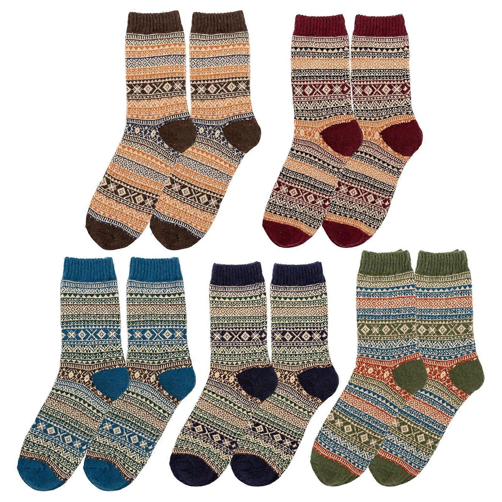 1/5 Pairs Men Winter Socks Mid-tube Thick Thermal Insulation Ethnic Style Home Bedroom Wear Floor Socks Colorblock Anti-slip Knitted Daily Wear Sport