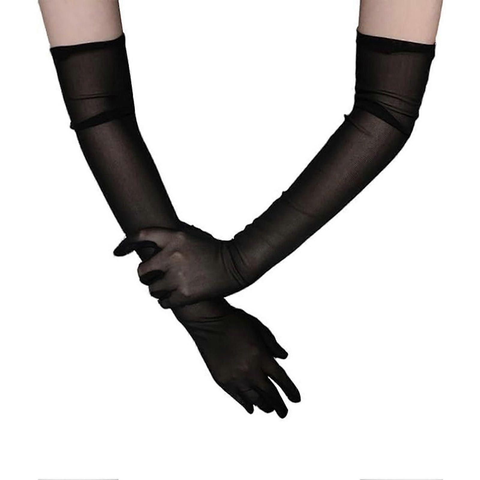1 Pair Women Prom Arm Sleeves See-through Mesh Lengthened Sunscreen Ultra Thin Performances Bride Wedding Photo Prop Arm Cuffs
