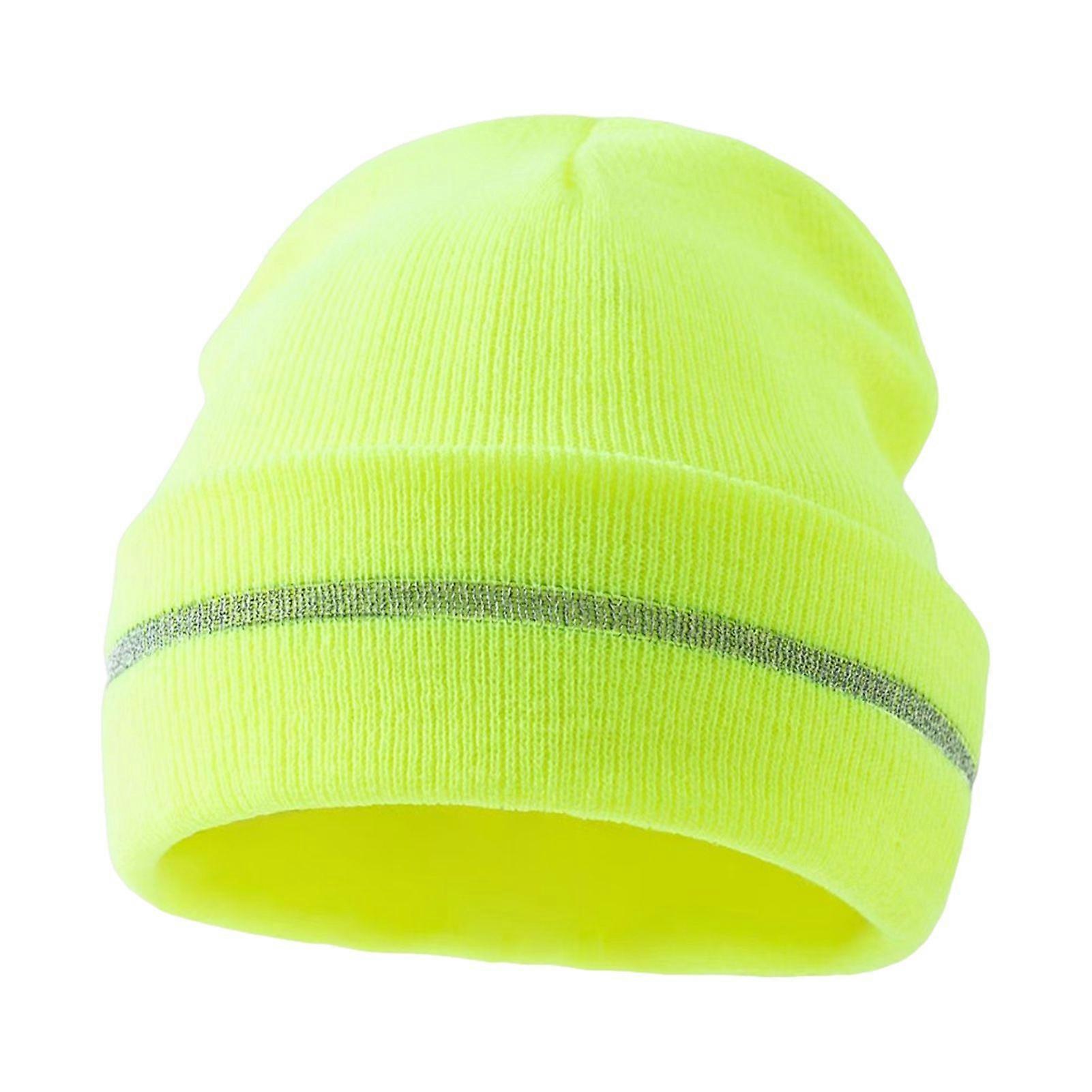 Men Outdoor Hat with Reflective Stripe High Elasticity Keep Warm Solid Color Folded Brim Nocturnal Sport Cap High-Visibility Knitted Headwear for Cons