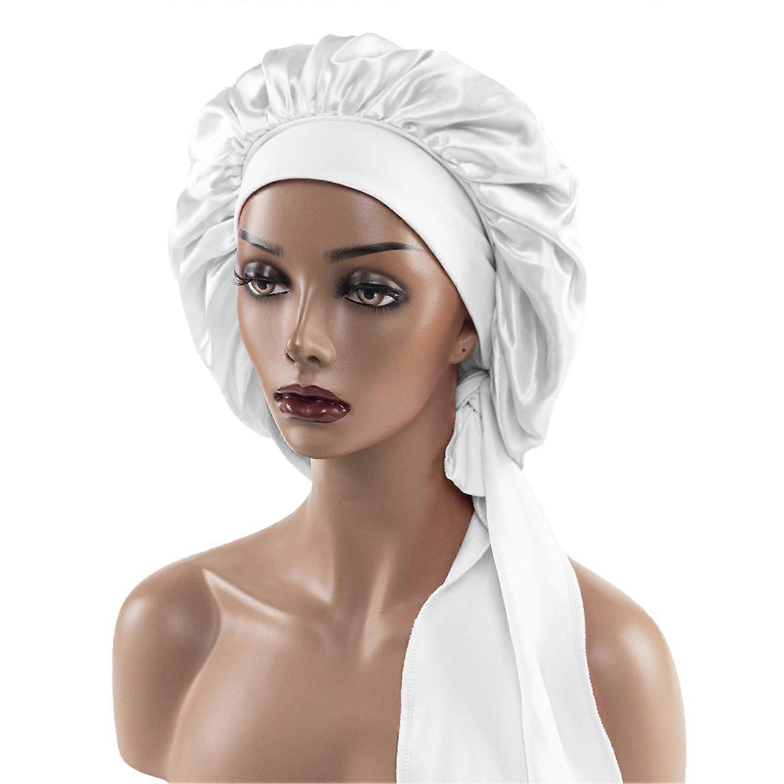 Sleeping Hat Solid Color Stretchy Ribbon Decoration Satin Fabric Round Hat Fine Texture Daily Wear Sleep Bathroom Headwear