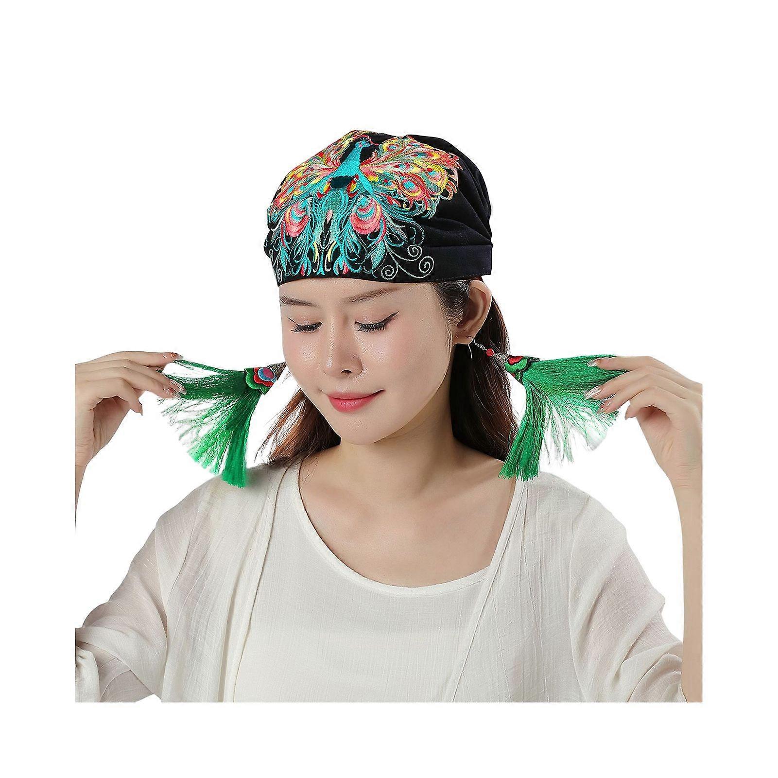 Turban Hat Retro Ethnic Style Embroidery with Elastic Band Chemotherapy Cap One Size Daily Headscarf for Alopecia Chemo Patients Bandana Headwrap