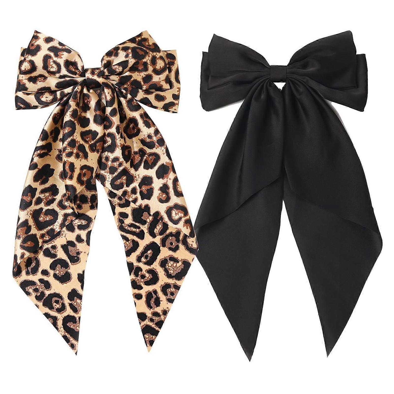 1/2Pcs Women Hair Bow Smooth Satin Bowknot Hair Clips Leopard Print Long Tail Design Hair Accessories
