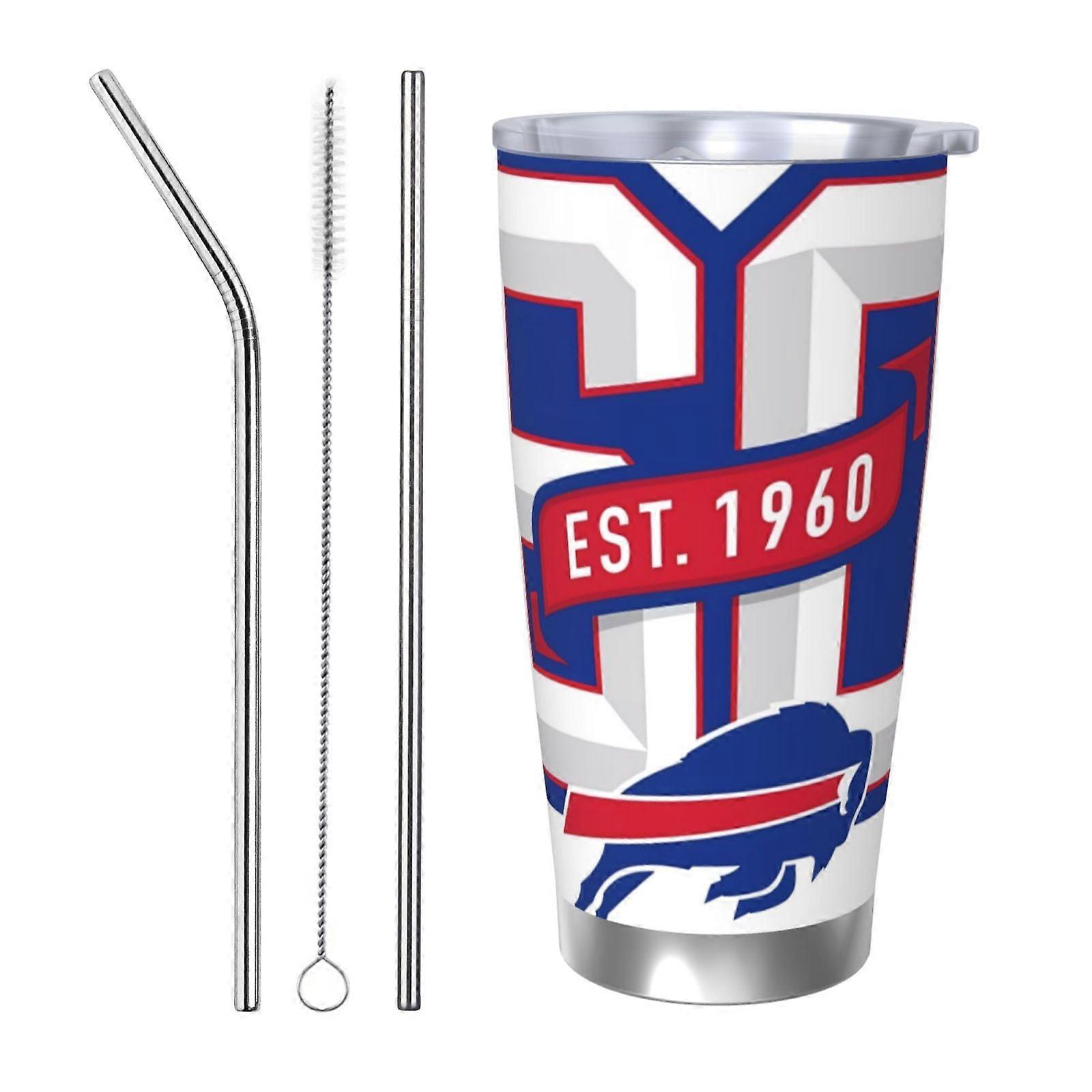 Bills Football Team Theme 304 Stainless Steel Thermos Cup 20oz with Lid & Straw, Compatible with Car Cup Holders, for Hot & Cold Drinks