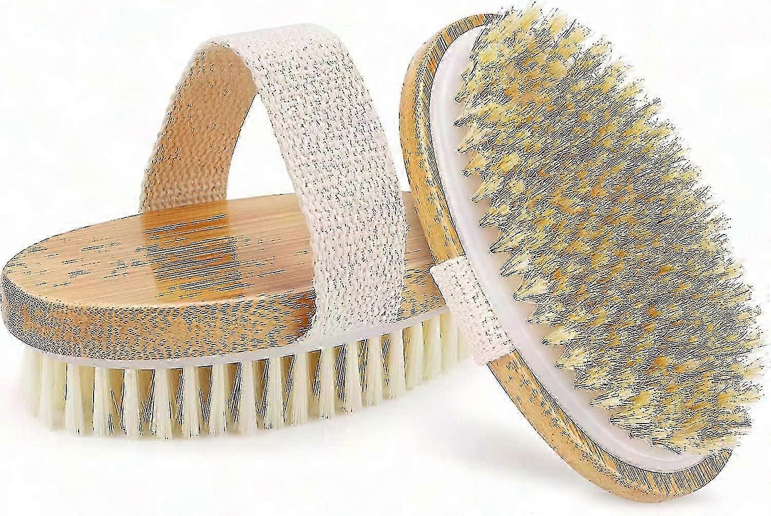 2 Piece Body Brush Set for Wet or Dry Brushing - Natural Bristles SZRH