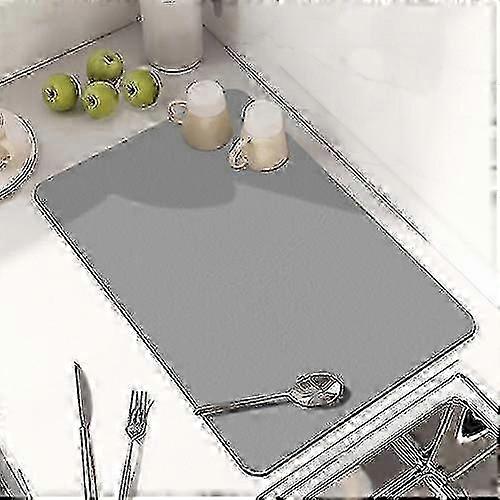 30x40cm Kitchen Drain Mat - Dish Drying Mat, PU Leather Coaster, Absorbent & Heat Insulation Mat (Minimalist Light Gray) SZRH