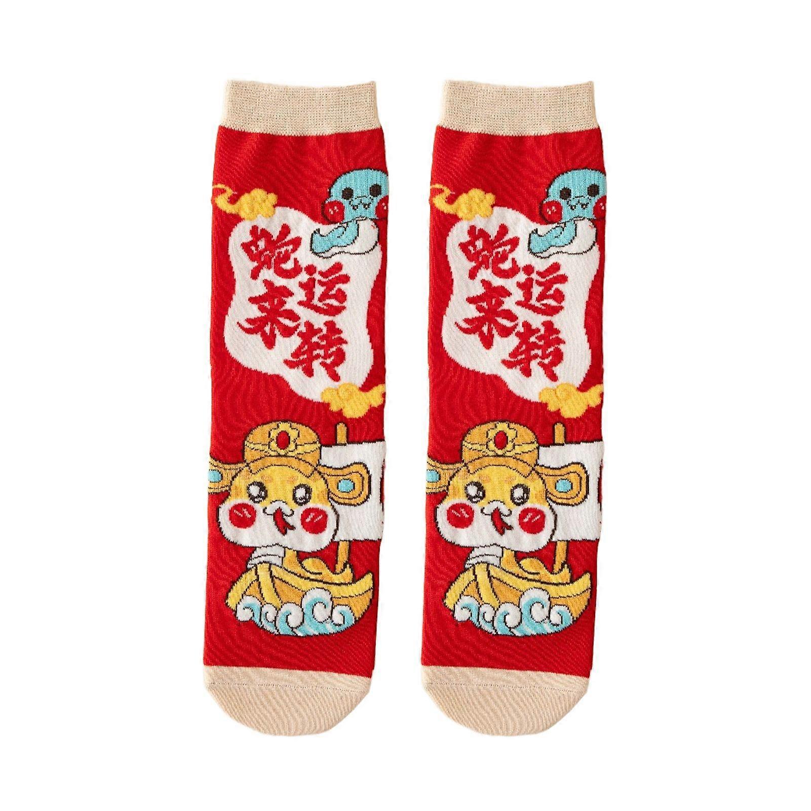 1 Pair Spring Festival Socks Cartoon Snake Print Festive Red New Year Socks Mid-tube Anti-slip Unisex Winter Socks