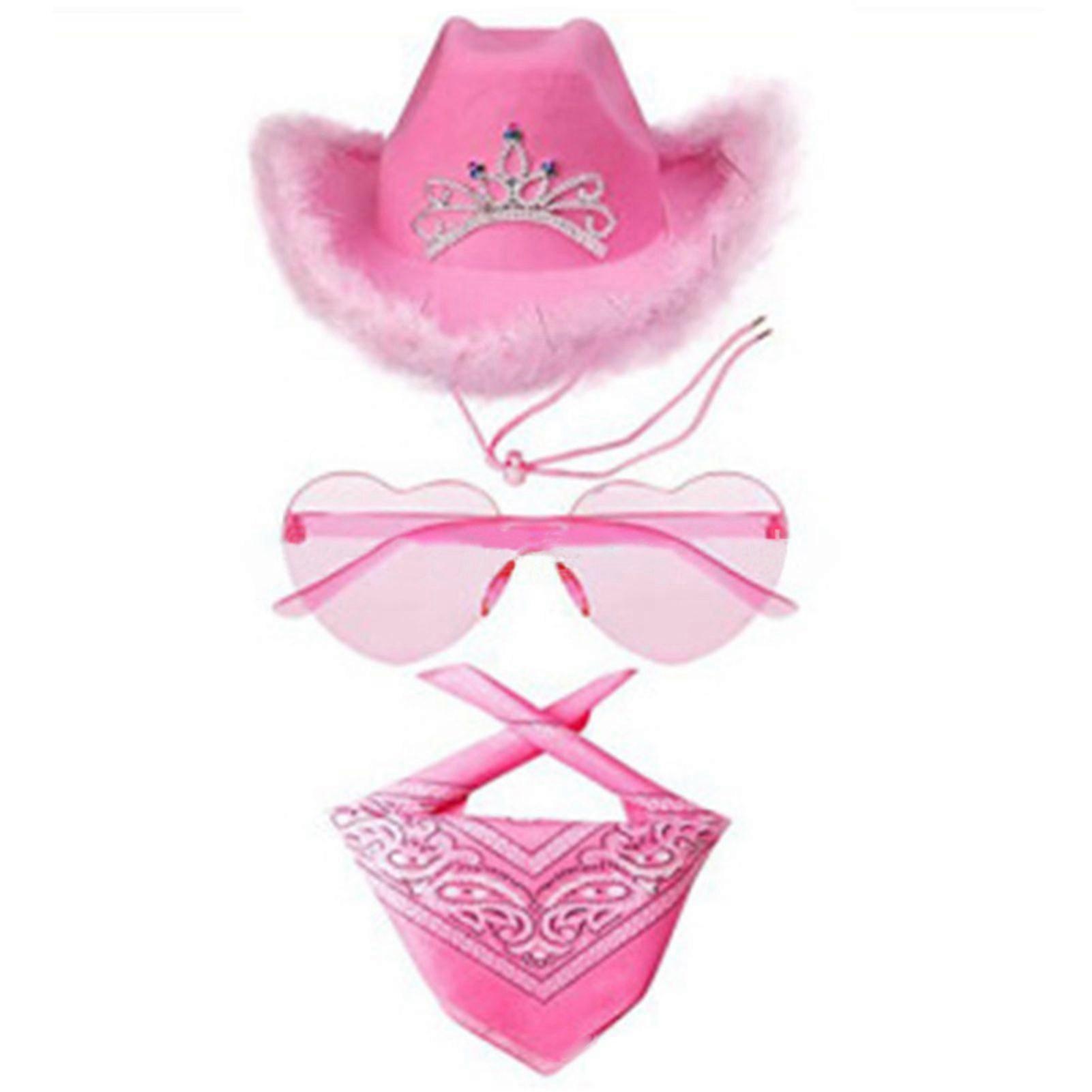 3Pcs/Set Cowboy Hat Set Women Pink Western Felt Cowgirl Hat with Bandana Glasses Accessories Headwear