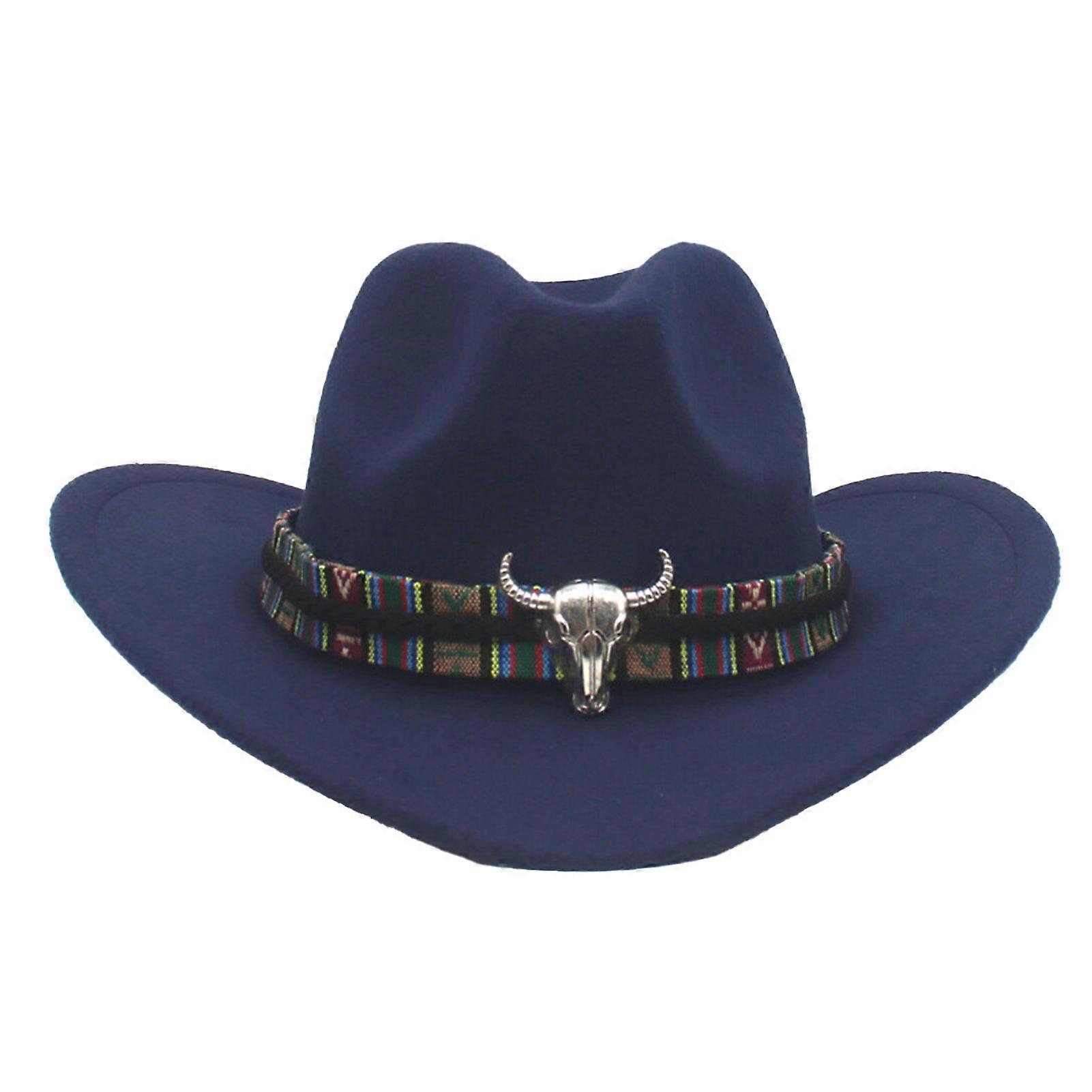 Western Cowboy Hat for Men Women Wide Brim Sun Protection Fedora Beach Hat Wool Cowgirl Felt Hat with Adjustable Strap