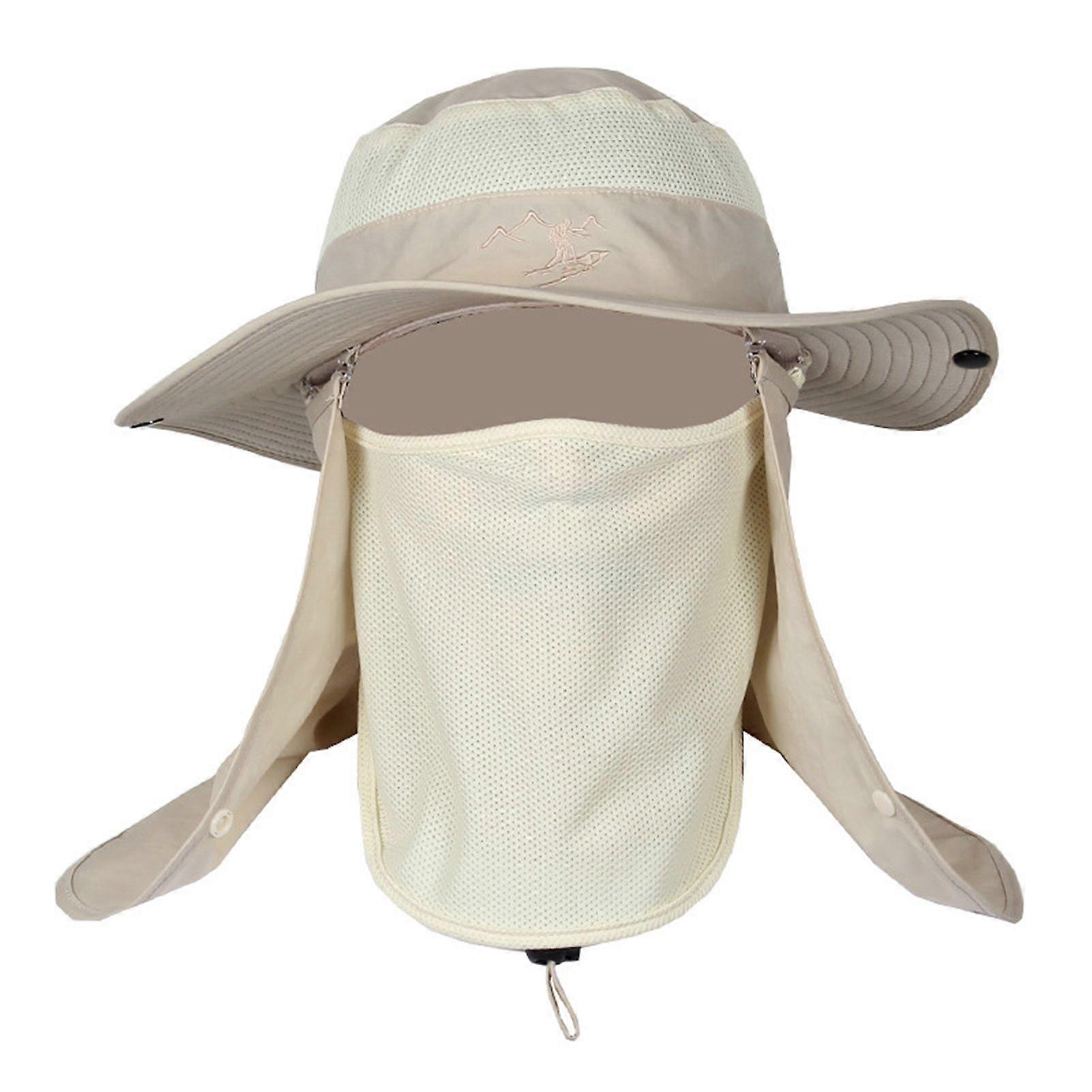 Sun Hat with Windproof Rope 360-Degree Sunshade System Curly Foldable Brim Outdoor Hat with Face Guard Shawl