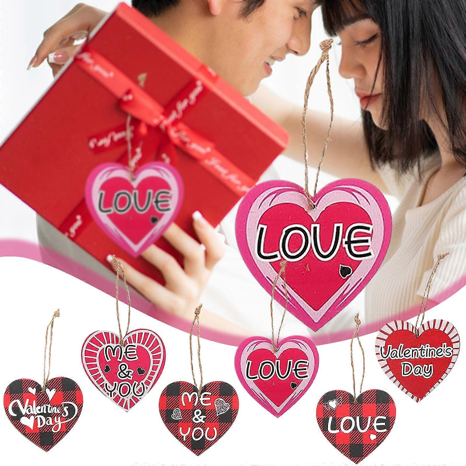 Valentines Day Decorations 6pcs Heart-Shaped Listing Wedding Decor Wooden Tags, Hanging Ornament, Wood Heart Signs For Gift Tags / Car / Backpacks