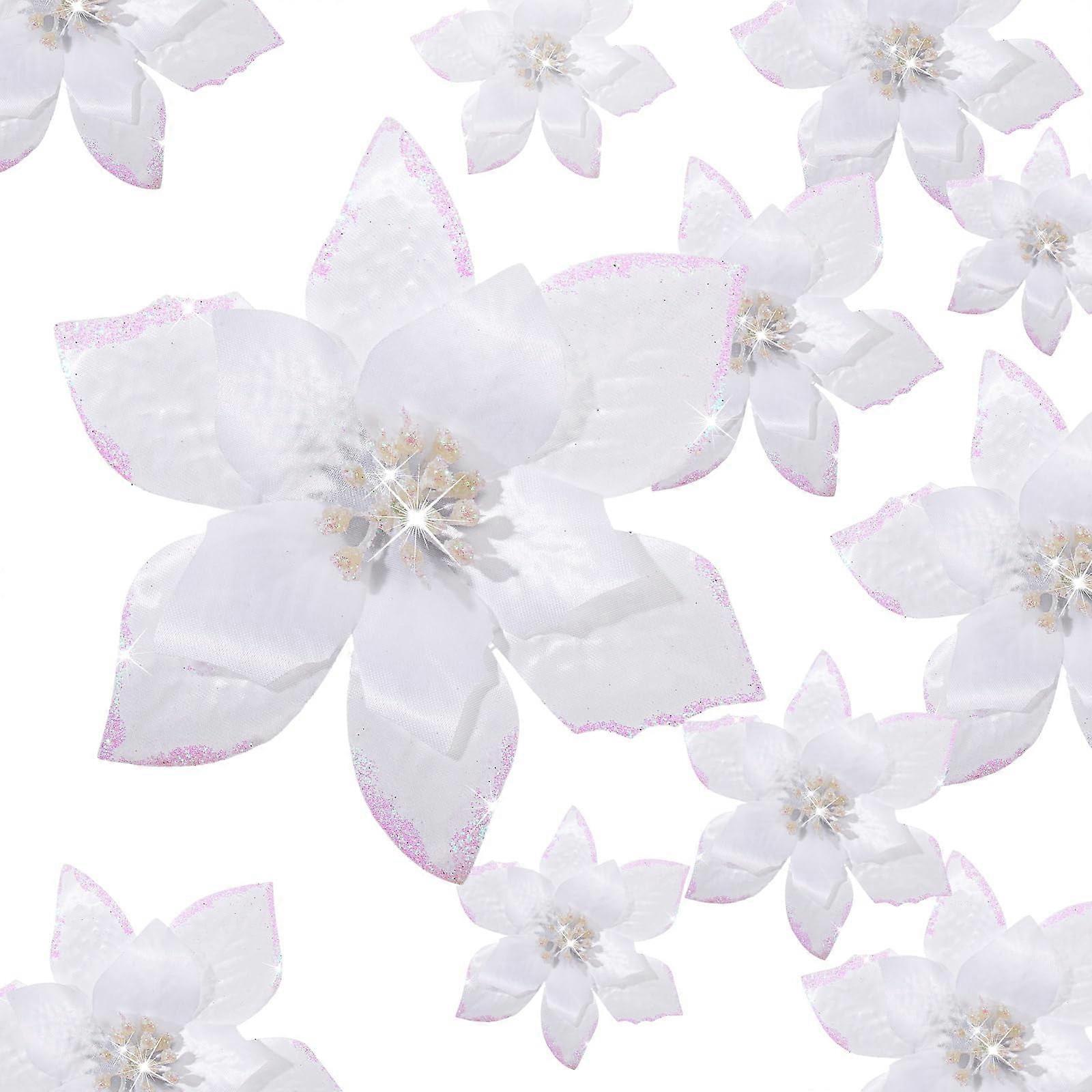 Crowye 36 Pcs Christmas Glitter Poinsettia Faux Flowers, 3 Sizes (4", 6", 9") White, Artificial Ornaments for Xmas New Year Home Outdoor Decor